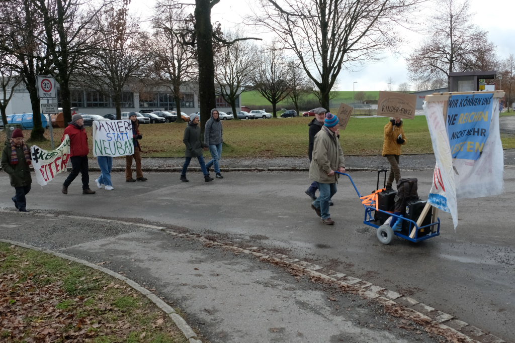 Der Wunsch von Lukas Häfele, „zivilen Ungehorsam“ zu zeigen, wurde von den Bad Wurzacher Schülern nicht erfüllt. Dafür machten sich die Demonstranten mit ihrem Marsch über die B465 nach Willis nicht gerade viele Freunde, auch nicht bei den begleitenden Polizisten, die sich fragten: „Wer beim Landratsamt genehmigt so etwas und bindet 15 Polizisten für so einen Zweck?“