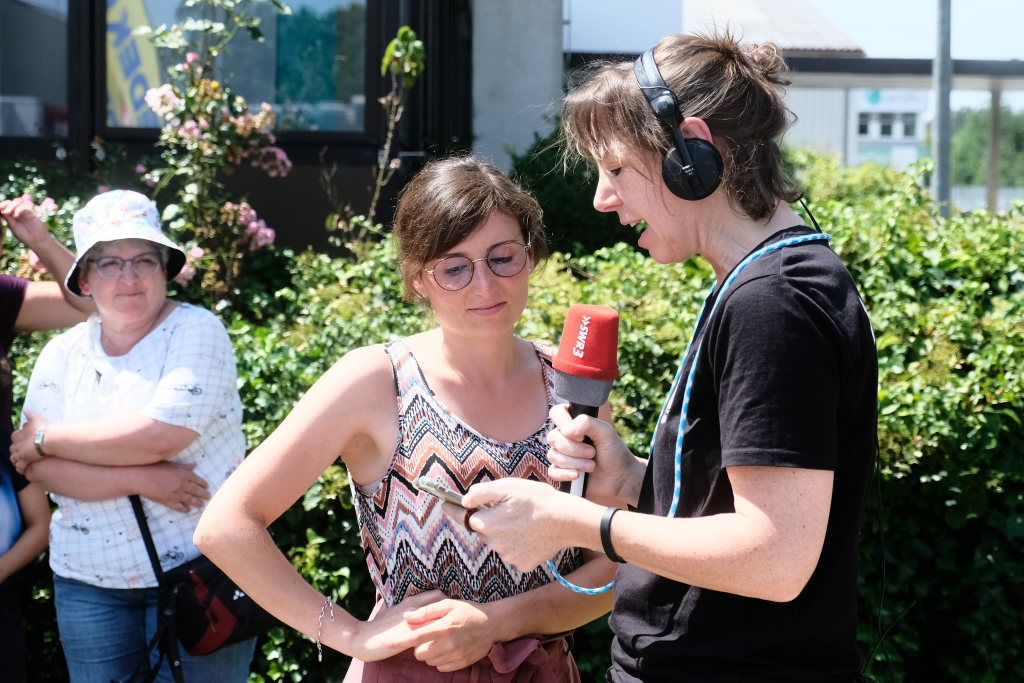 Bis der Eistruck und die SWR3-Crew mit den Moderatoren Sara Talmon, Jochen Graf und Simone Sarnow um etwa 12.15 Uhr auf dem Besucher-Parkplatz neben dem Empfangsgebäude der Verallia Deutschland eintrafen, hatten die Initiatoren der Challenge noch einiges zu erledigen. Carolin Bochtler gab im Interview mit der Reporterin zu, dass sie schon einen Hauch von Panik verspürt hatte, ob sie alle anstehenden Aufgaben so schnell gelöst bekommen würde, die da nun so plötzlich auftauchten. So musste der Besucherparkplatz freigemacht werden, die Marketingabteilung der Firma stellte einiges an Werbematerial zur Verfügung, zwei veralliagrüne Liegestühle verbreiteten einen Hauch von Urlaubsgefühl, als die Mitarbeiter nach ihrer Mittagspause von der Kantine auf den Besucherparkplatz strömten, um sich ihre eiskalte Erfrischung zu sichern. Die Werksfeuerwehr sicherte den „Festplatz“ ab, denn das Ganze spielte sich ja während des laufenden Betriebs ab. LKW wurden zu ihren Beladungsstellen durchgewunken und Pkw mussten umgeleitet werden. Dem Aufruf, zum Eistruck zu kommen, folgten dann auch viele Wurzacher, doch kamen die meisten erst nach 13.00 Uhr und waren, als die Moderatorin kurz vor den Nachrichten ins Studio schaltete, um ein erstes Stimmungsbild abzugeben, noch gar nicht vor Ort.