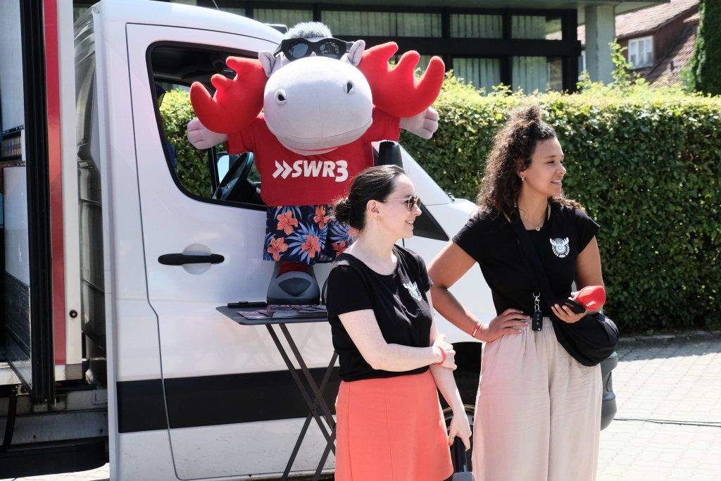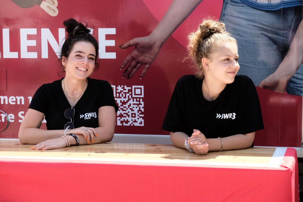 Die Initiatorin Carolin Bochtler (li.) im Interview mit SWR3-Morningshow-Moderatorin Rebekka de Buhr.