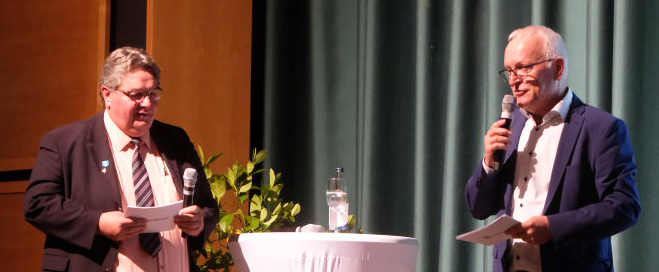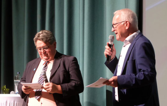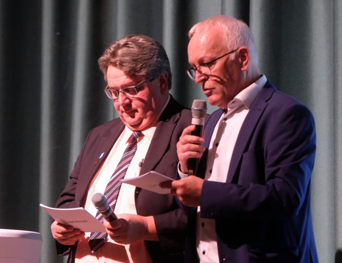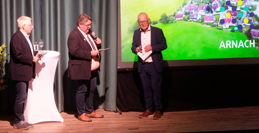 Für Arnach sprachen der amtierende Ortsvorsteher (und Co-Moderator beim Festabend) Manfred Braun (rechts) und dessen Amtsvorgänger Michael Rauneker (links).