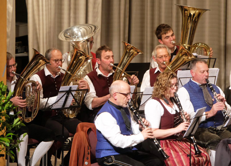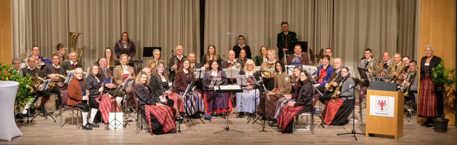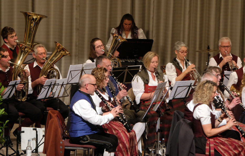 Musizierende aus zehn Kapelle, in großer Harmonie vereint unter der Stabführung von Petra Springer (rechts).