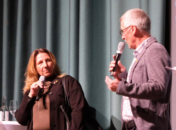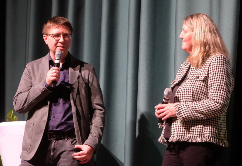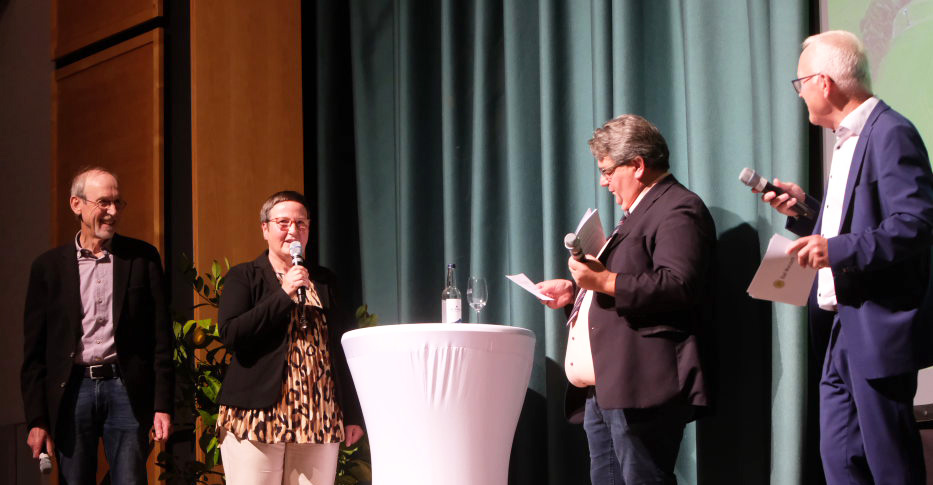 Petra Greiner, die Ortsvorsteherin von Seibranz, hatte mit ihrem Stellvertreter Roland Eisenbarth einen „eingeborenen“ Seibranzer mitgebracht; sie selbst habe als „Zugereiste“ keine eigenen Kenntnisse über die Eingemeindung. An diesen war dann auch die erste Frage gerichtet, wie es damals war, denn viele Seibranzer tendierten eher nach Leutkirch. Damals ein kleiner Steppke, dem Fußball und Sportplatz wichtig waren, konnte Eisenbarth sich doch an eine hitzige Diskussion über die „Zwangsheirat“ bei einem Namenstagsfest erinnern. In Seibranz liegt mit dem 791 m hohen Wachbühl der höchste Punkt auf Wurzacher Gemarkung und damit ein schöner Fleck Erde, auf den Petra Greiner stolz ist. Sie lobte in ihren Ausführungen den Zusammenhalt und die Vielfältigkeit an Vereinen. Auch der Ortschaftsrat packe oft mit an. Als Werbeblock gab die Ortsvorsteherin noch das Datum der Halleneinweihung bekannt, die von 11. bis 13. September 2026 gefeiert wird.