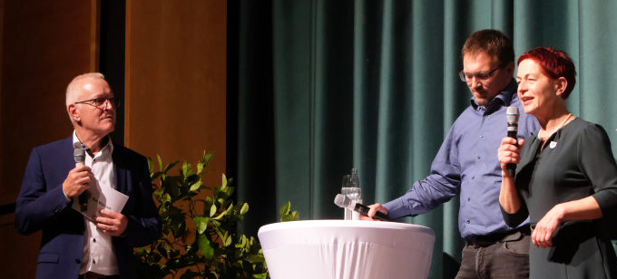 Auch die Ziegelbacher Ortsvorsteherin Sybille Schleweck hatte, weil erst seit wenigen Monaten im Amt, zur Verstärkung ihren Stellvertreter Andreas Glaser mitgebracht. Dieser sagte auf die Frage, was Ziegelbach denn ausmache, die Vereine und der Dorfstadel als das Herz der Ortschaft. Er würde sich wünschen, dass nicht immer nur auf den Ortschaftrat draufgeklopft werde, sondern auch einmal gelobt werde. Für Ziegelbach als räumlich so nahe bei Bad Wurzach liegende Gemeinde sei es die richtige Entscheidung gewesen, eben dorthin zu gehen, sagte Sybille Schleweck. Angesprochen auf die Zukunftspläne meinte die Ortsvorsteherin, man habe manche Ideen und Pläne: Wichtig sei, dass Schule und Kindergarten im Ort blieben. Sie erinnerte an das wunderbare Fest zum 750-jährigen Jubiläum, bei dem so viele mit angepackt hätten.