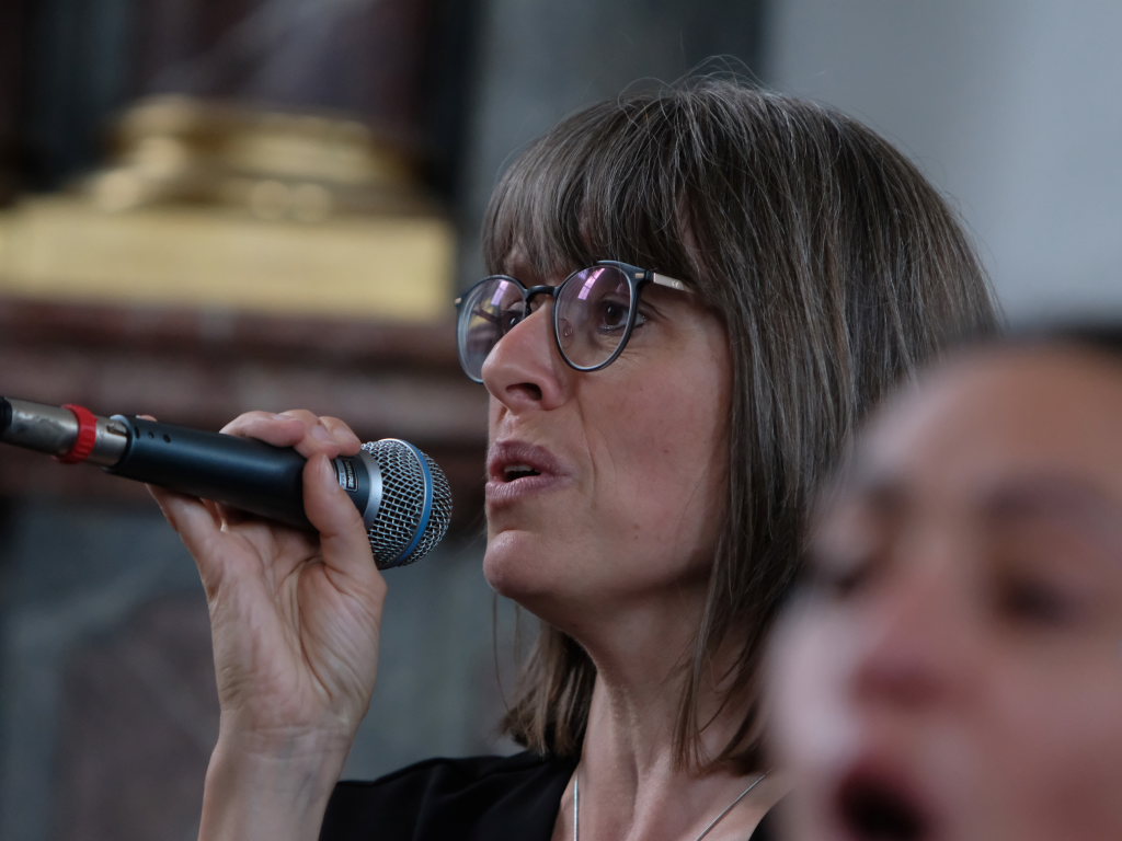 Mit „I’m not forgotten“ – Ich bin nicht vergessen, Gott kennt meinen Namen – zeigte der Chor – mit Peter Barensteiner als Solisten – sein Vertrauen in Gott, dem sie mit „Baba Yetu“ dem afrikanischen „Vater Unser“ das Gebet schlechthin der Christenheit folgen ließen. Hier und beim folgenden „Holy Water“ sang ebenfalls Peter Barensteiner den Solopart. „Weihwasser ist ein Segenszeichen und soll uns an unsere Taufe erinnern,“ erklärte die Sprecherin bei der Einführung zu „Holy water“. Auch wenn ich strauchle oder manchmal mein größter Feind selber bin, ich werde es tun wie mein Vater es mich gelehrt hat, immer und immer wieder.“