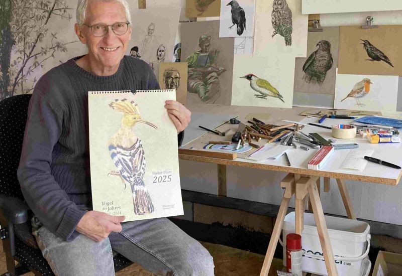 Bad Wurzach/Kanzach – Nach der Herausgabe des Insekten-Kalenders „Juwelen der Erde“ für 2024 erscheint für das Jahr 2025 der Kalender „Vogel des Jahres“. Dazu hat der in Kanzach lebende Künstler 13 Blätter mit den Motiven der gekürten Vögel der Jahre 2012 bis 2024 gestaltet.