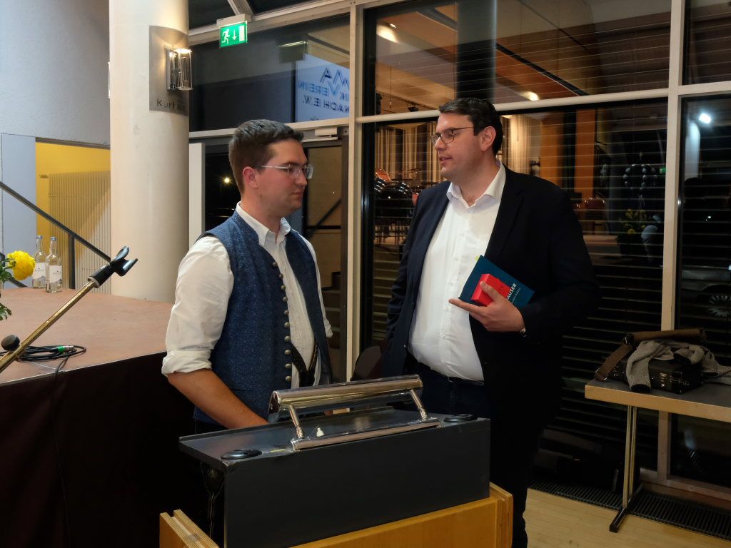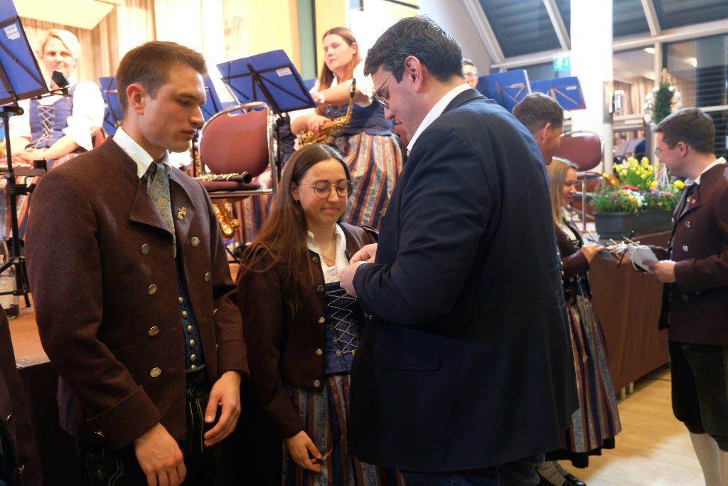 Wachter hatte an diesem Abend viel zu tun, denn er durfte Musiker ehren, die zusammen insgesamt über 500 Jahre Engagement für eine der schönsten Sachen der Welt, für die Musik, hinter sich haben. Deswegen holte er sich auch Bürgermeisterin Alexandra Scherer als Assistentin.