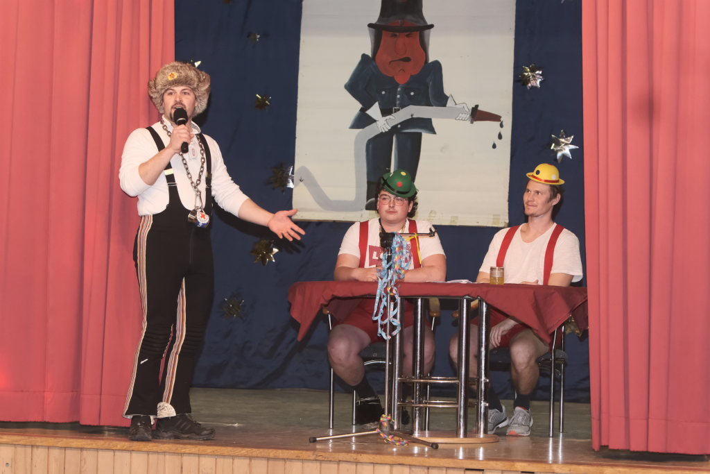 Manne Willburger ist als Komödiantin Kunigunde schon eine Feuerwehrball-Ikone. Es hatte schon Charme und Witz, wie er (bzw. sie) über den Schuhkauf von Freundin Amanda herzog, die ganz gewiss schon das eine oder andere Pärchen zu Hause stehen hat. Auch Lokalkolorit nahm in seiner Bütt großen Raum ein: Eines seiner Lieblingsthemen: die Anbindehaltung: Metzger Seif muss jedes Steak aus Anbindehaltung an der Ladentheke befestigen. Und ein besorgter befreundeter Landwirt fragt beim Landratsamt an, ob das Anbindegebot auch für seine liebe Gattin gilt?