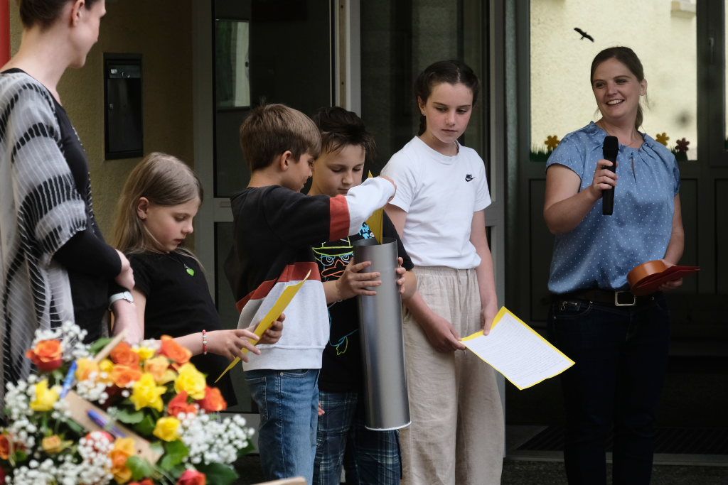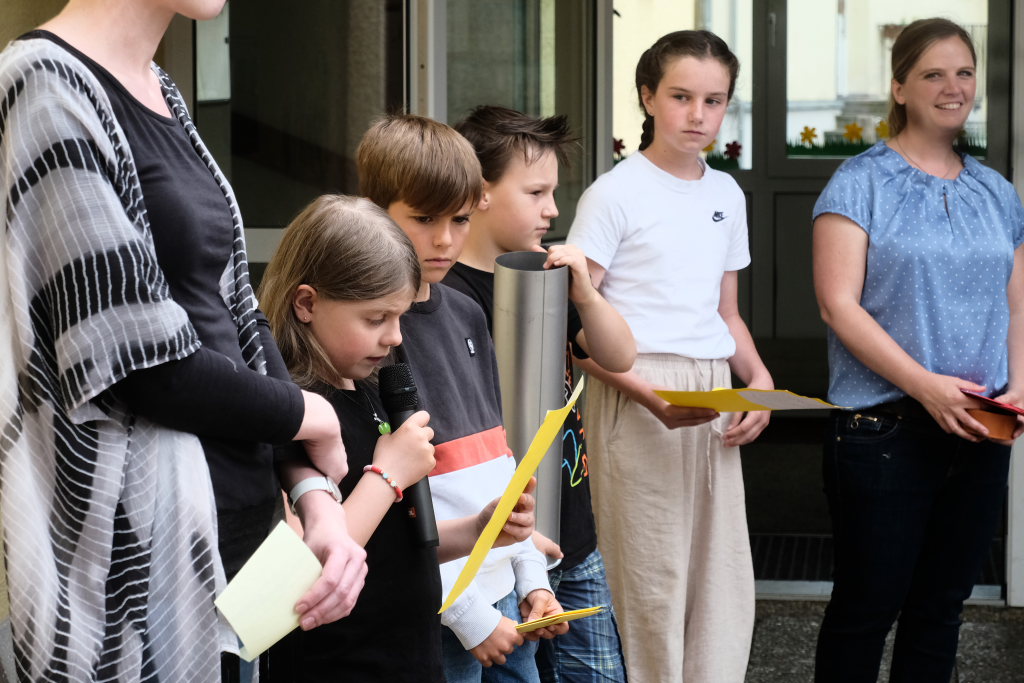 Nach einem weiteren Lied der Schüler wurde eine Zeitkapsel in unmittelbarer Nähe zum Schulgebäude vergraben. Inhalt: Briefe und Fotografien aus den letzten 25 Jahren der Schulgeschichte sowie Ideen der SchülerInnen, wie sie sich die Schule in 25 Jahren vorstellen. Eine liebevoll gestaltete Ausstellung in den Klassenräumen ging detaillierter darauf ein und konnte nach dem Ende des offiziellen Festaktes wie auch mehrere andere Ausstellungen über das Schulleben begutachtet werden.