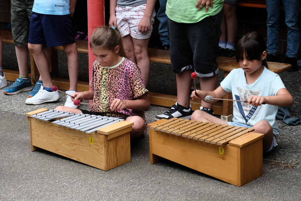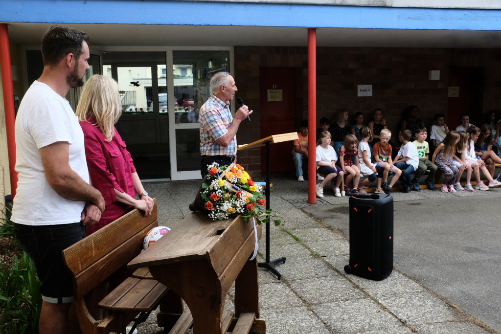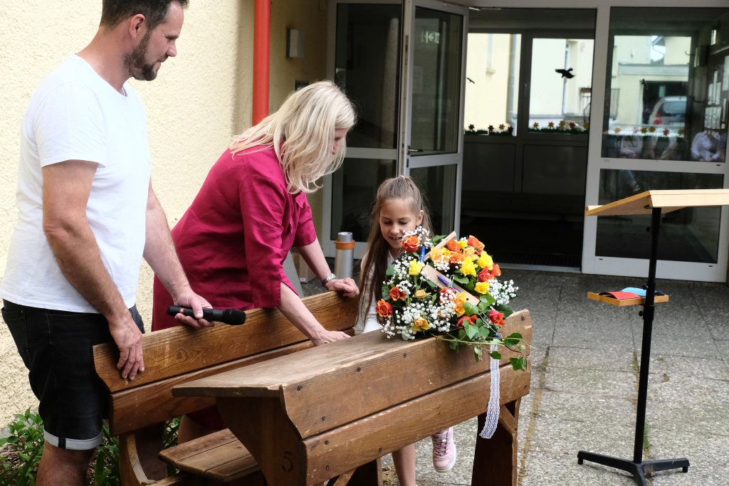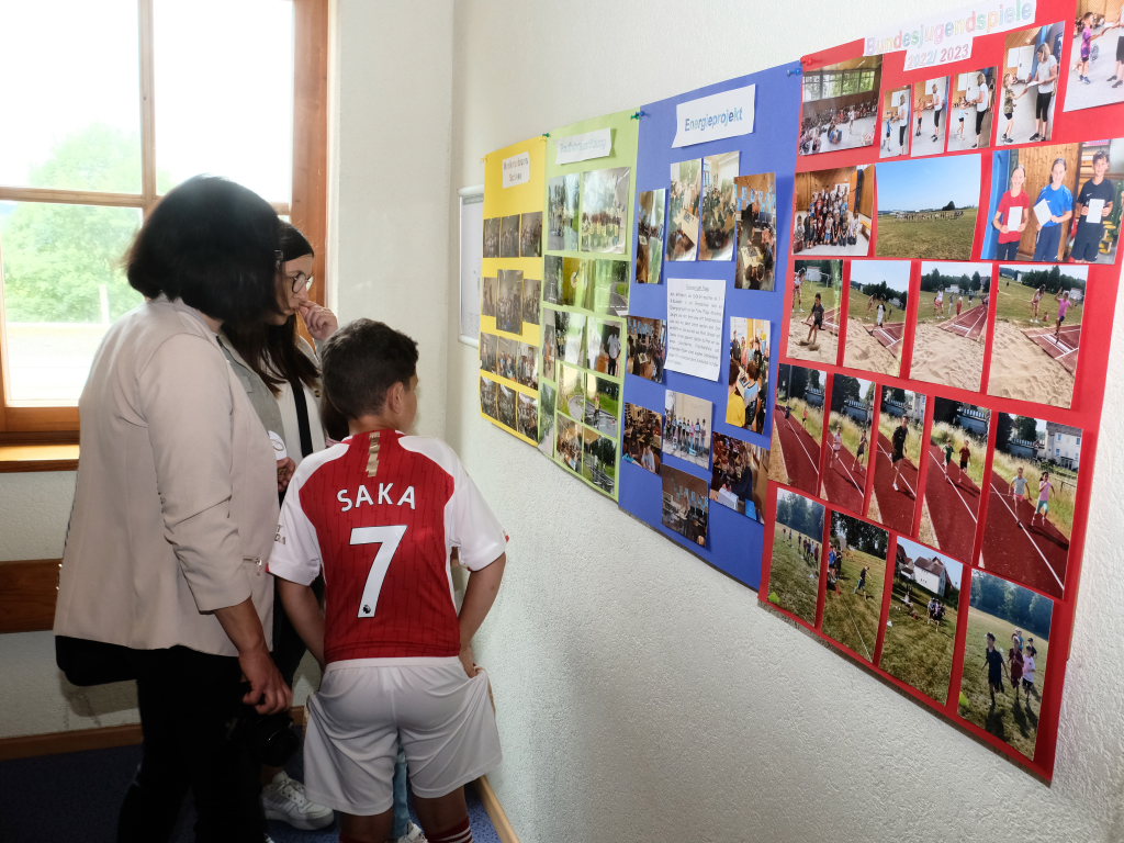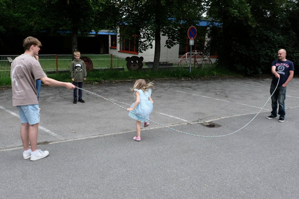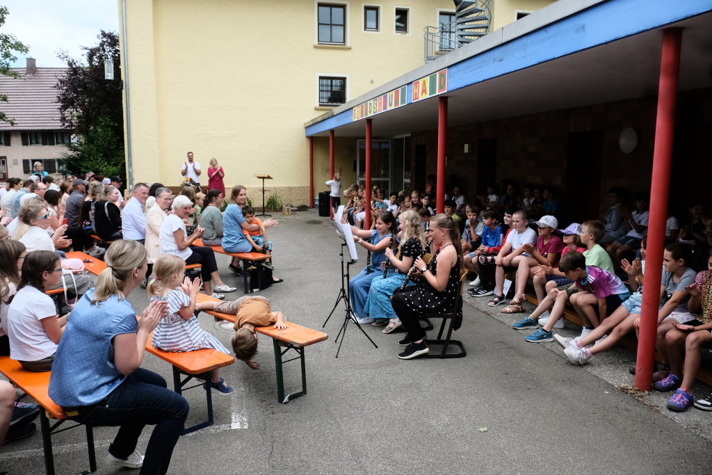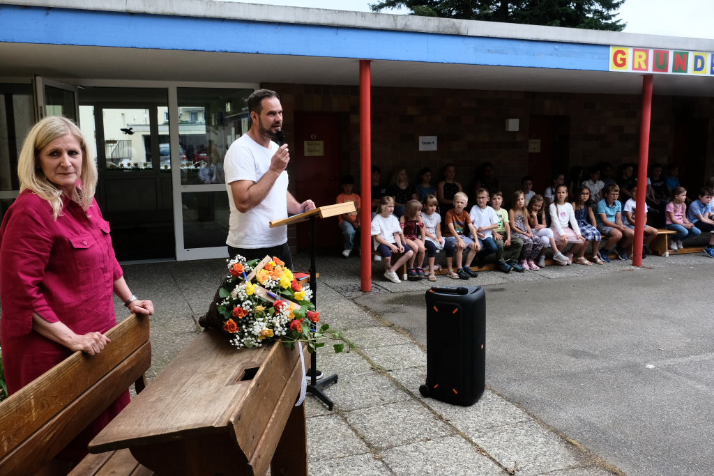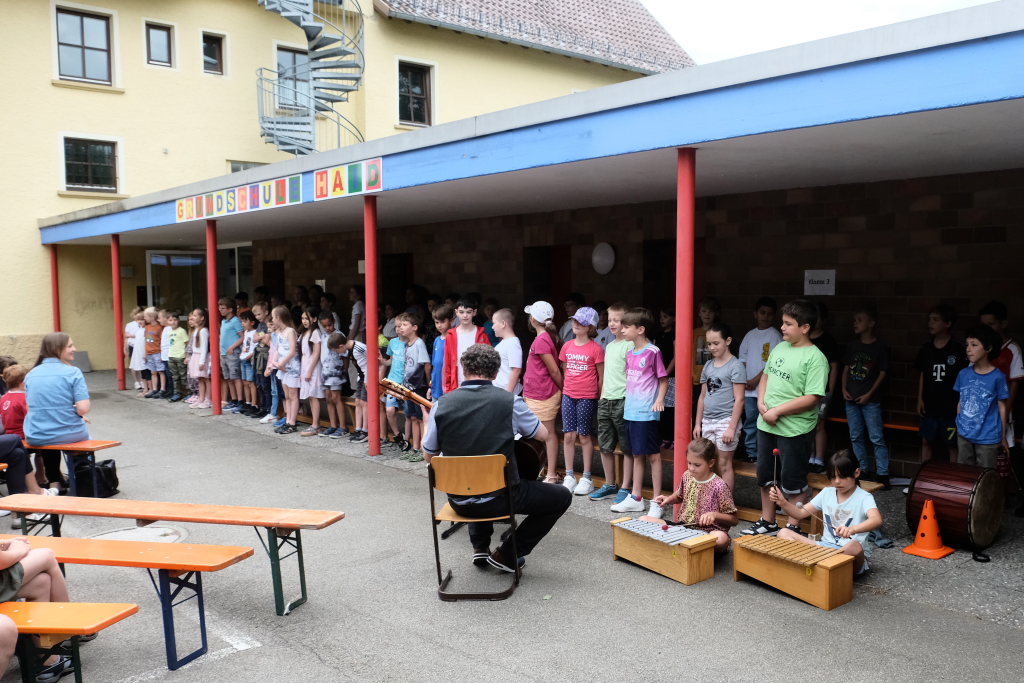 Sie schloss ihre Rede mit einem großen Dank an die Elternvertreter und den Förderverein, die gemeinsam seit mehr als eineinhalb Jahren das Fest vorbereitet hatten, dem Bauhof, der in den letzten Wochen zur Vorbereitung des Festes unglaubliches geleistet hatte, Eltern und ehemaligen Schülern sowie Mitglieder der SG Haidgau, die an den Spielestationen halfen.