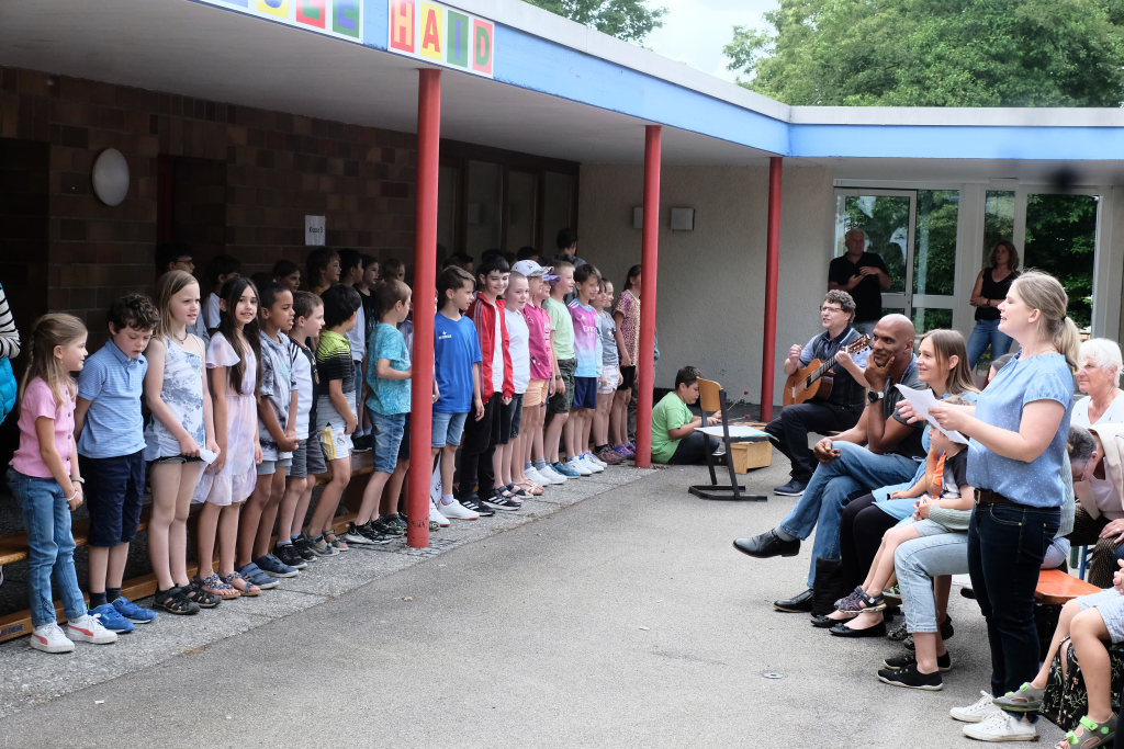 Schudeja freute sich, neben Bürgermeisterin Alexandra Scherer, Ortsvorsteher Alfons Reichle, André Radke, den geschäftsführenden Schulleitern aller Bad Wurzacher Schulen und der stellvertretenden Amtsleiterin des staatlichen Schulamtes in Markdorf, Bernadette Behr, auch viele ehemalige LehrerInnen und SchülerInnen der Grundschule Haid zu der Feier begrüßen zu können, die von Lehrern, Eltern, Elternbeirat und Förderverein auf die Beine gestellt worden war.