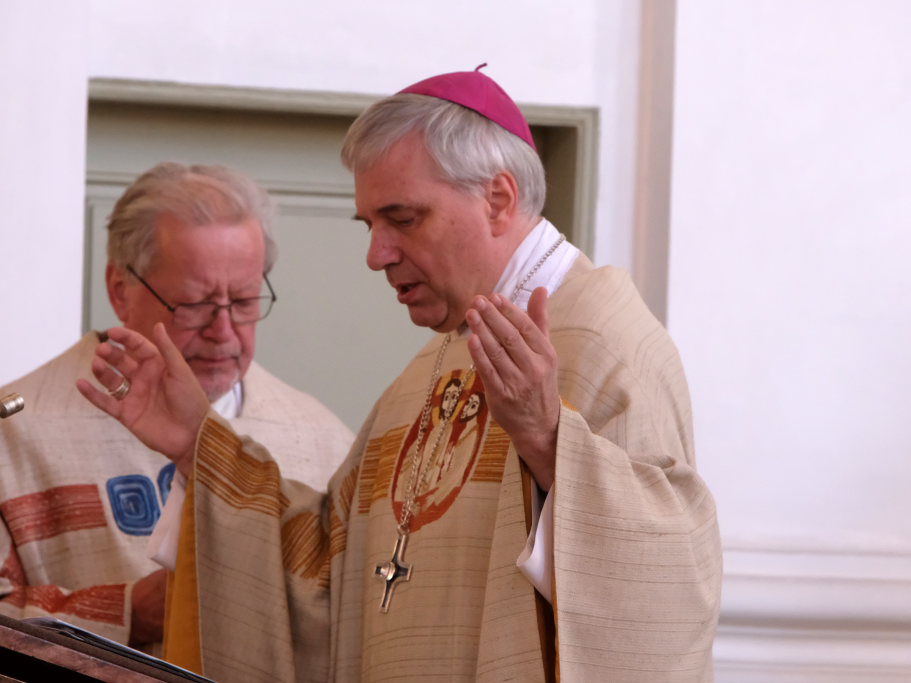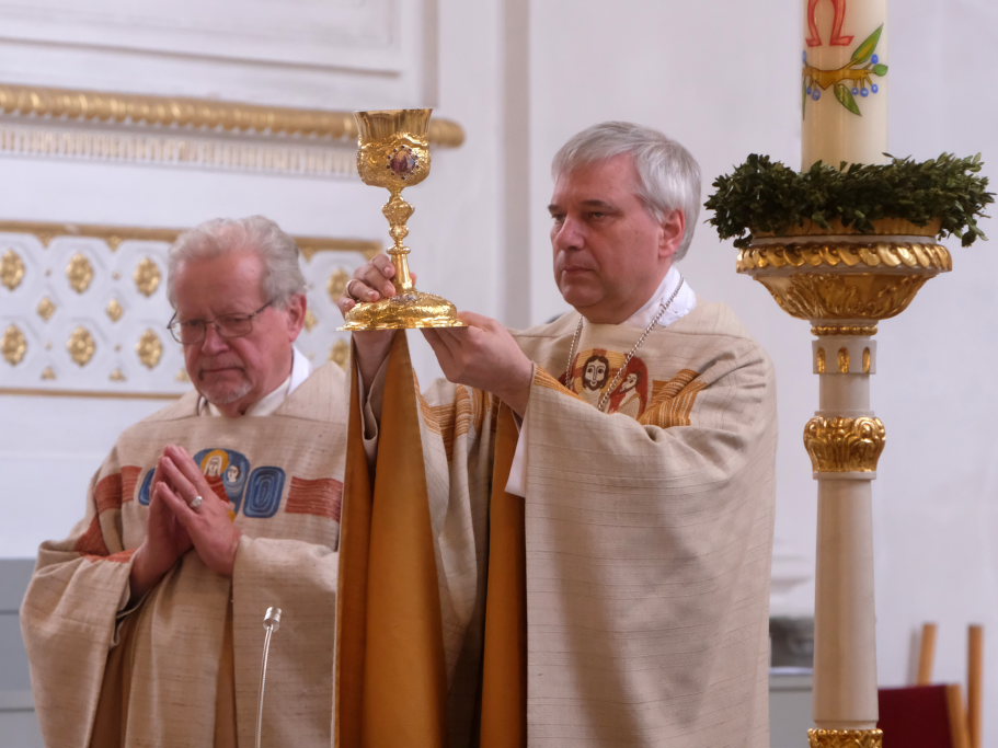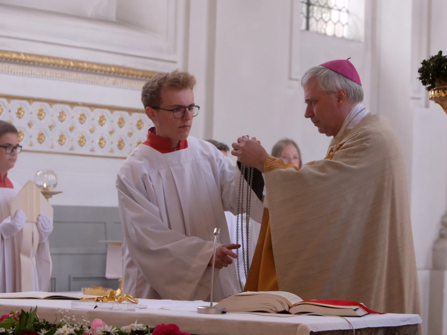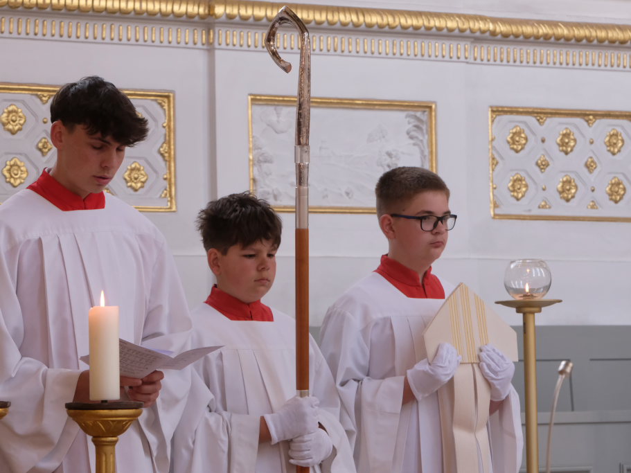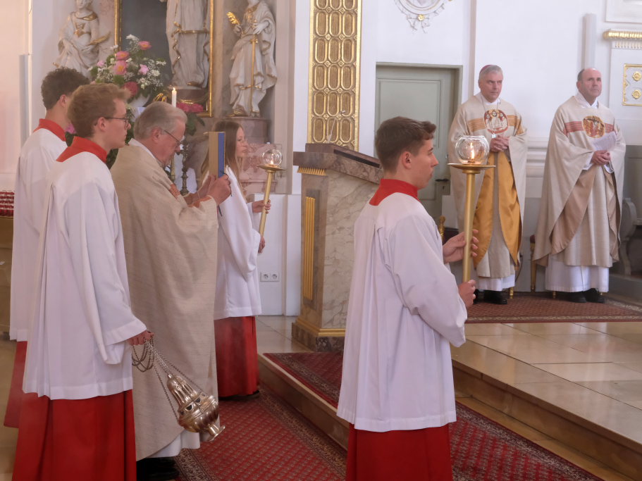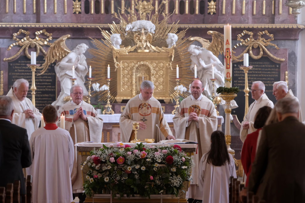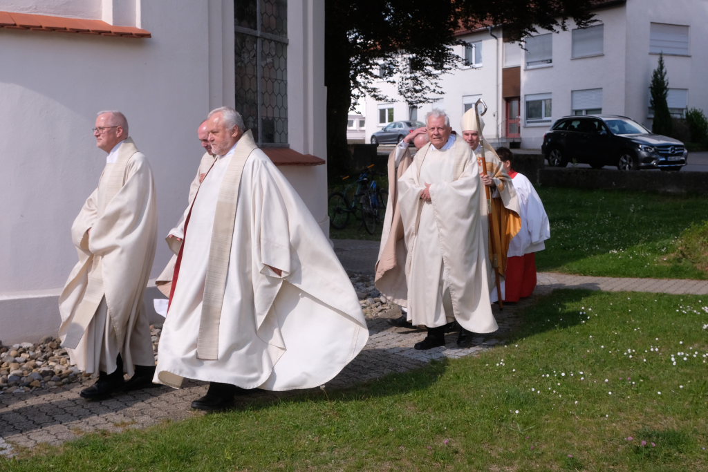 Neben dem aktuellen Hausherrn von St. Verena, Pfarrer Stefan Maier und seinem Vorgänger Norbert Wahl waren noch Dekan Ekkehard Schmid aus Weingarten und der frühere Pfarrer von Ochsenhausen Sigmund Schänzle gemeinsam mit dem ehemaligen Provinzial der Salvatorianer, Pater Hubert Veeser, der aus der Kisslegger Teilgemeinde Immenried stammt, neben dem Weihbischof bei diesem Gottesdienst um den Tisch des Herrn versammelt.