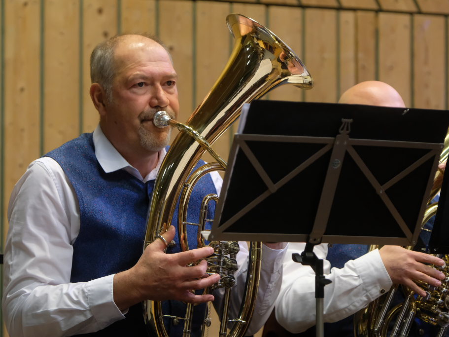 Haidgau – Startpunkt ihres Höhenfluges war die Turn- und Festhalle Unterschwarzach. Vorstandssprecher Johannes Wirth freute sich über die vielen Besucher/innen. Neben zahlreichen Ehrenmitgliedern der Kapelle konnte er auch viele Musiker aus der Region und natürlich auch Bürgermeisterin Alexandra Scherer, sowie die Ortsvorsteherinnen von Haidgau Ernestina Frick und Unterschwarzach, Gisela Brodd und diejenige von Gospoldshofen, Marga Loritz, begrüßen.