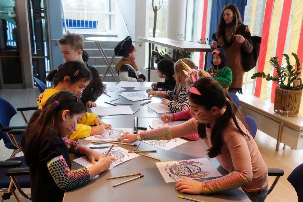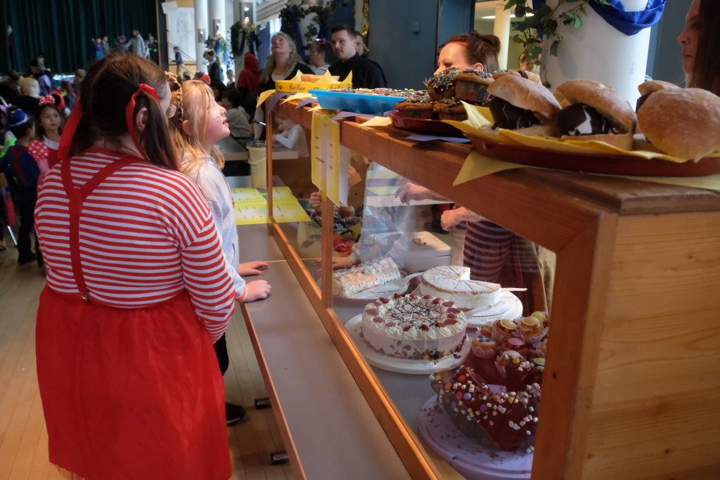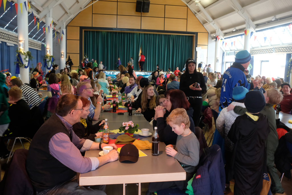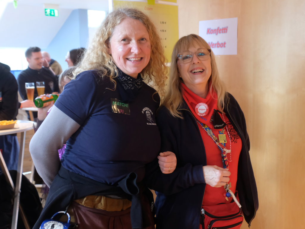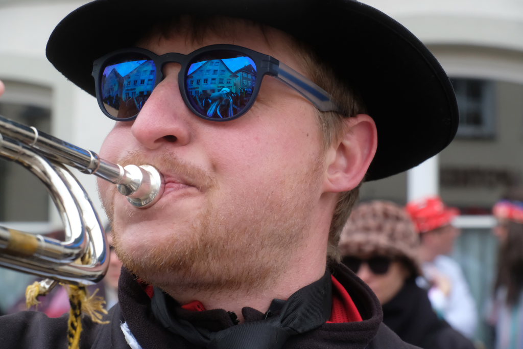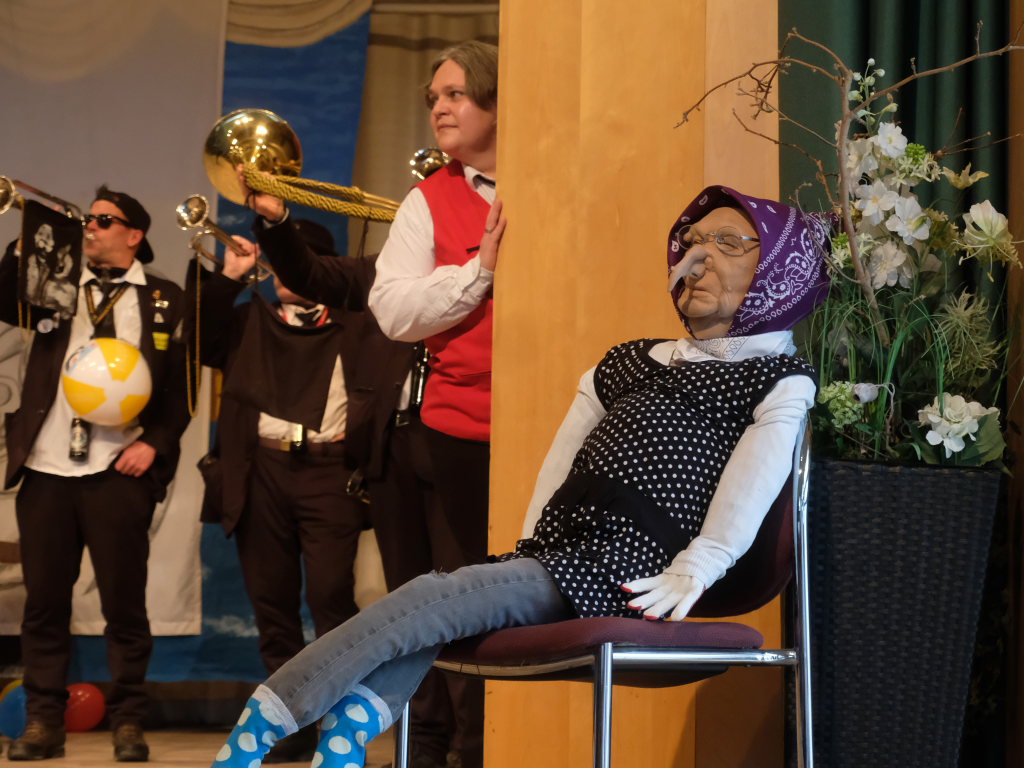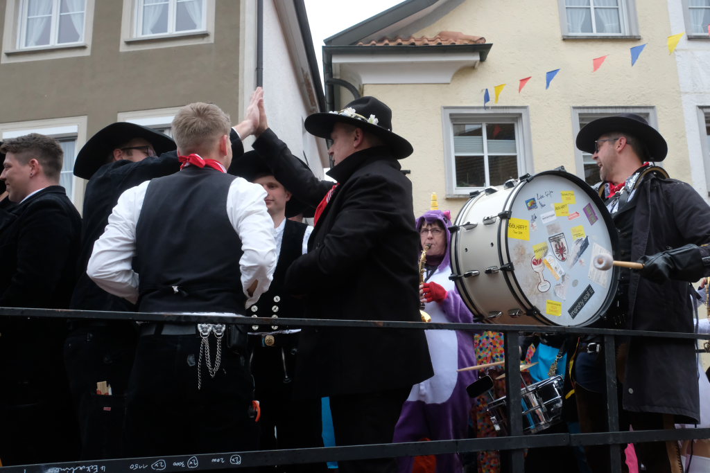 Und nach dem Zimmermanns-Klatsch und nachdem einige Maßkrüge auf dem Rednerpodest gekreist waren, machten sich die großen und kleinen Narren unter den Klängen des Fanfarenzugs auf den Weg zum Kursaal, jetzt “Kulturschmiede”, auf, wo die Narrenzunft ein kleines Programm mit Malen, Spielen und Tanzen für die Kleinen vorbereitet hatte, auch Essen und Trinken für alle.
