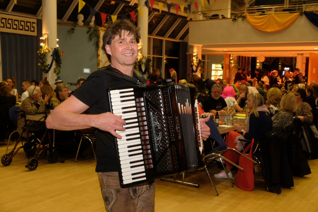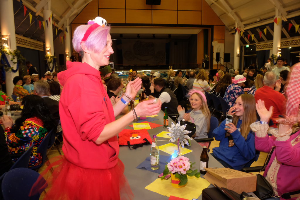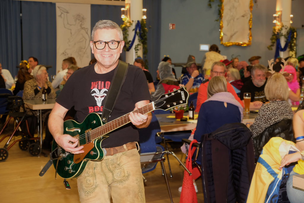 Nachdem die Band schon einige musikalische Runden gedreht hatte, darunter für ein Geburtstagskind namens Heidi das entsprechende Lied aus der Schweiz sowie das obligatorische Happy-Birthday, begrüßte Zunftmeister Dominic Neher das Publikum im Namen der Narrenzunft zu der Feierabend-Gaudi, durch dessen Programm Kathrin Neher und Florian Grimm führten.