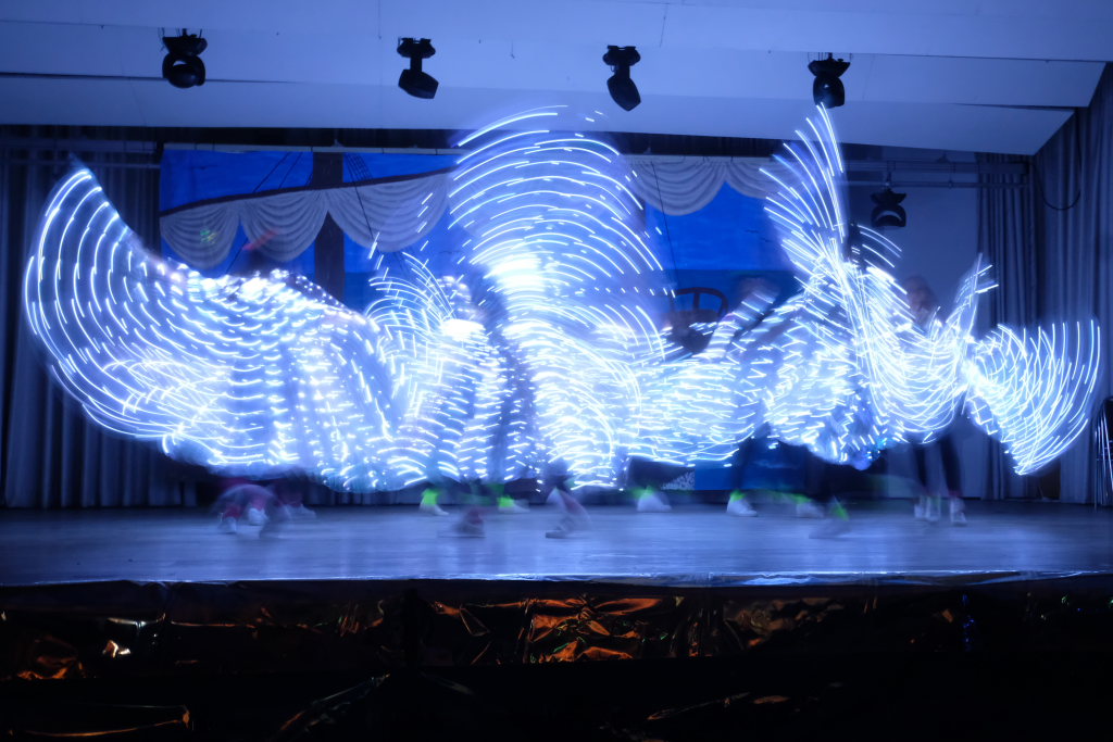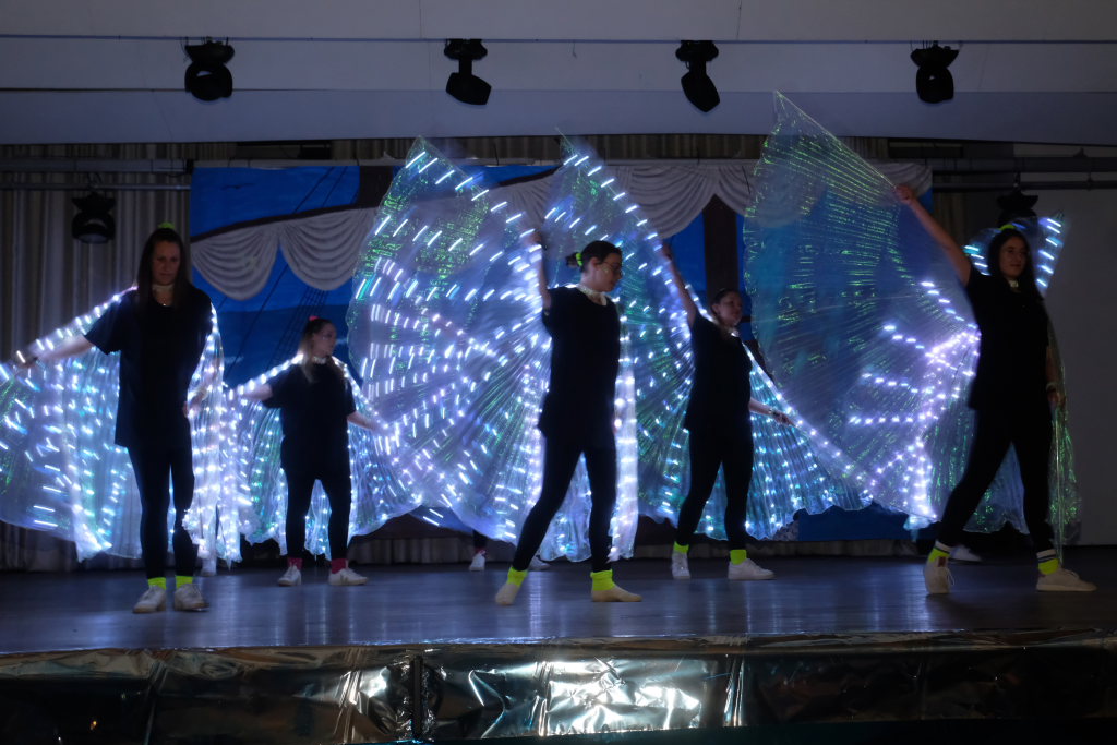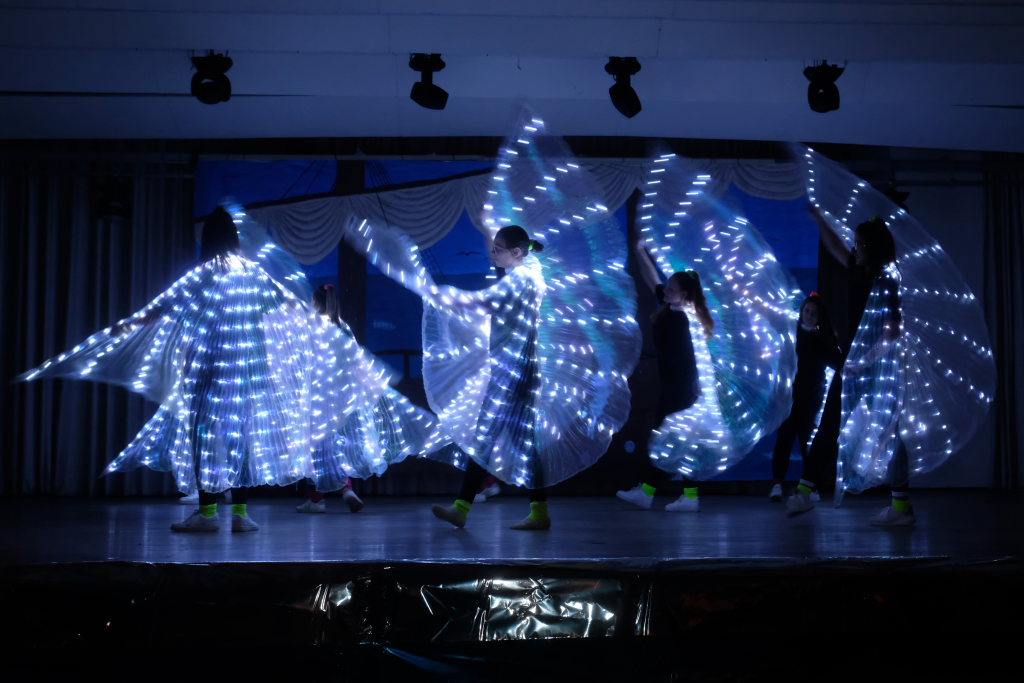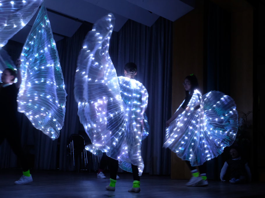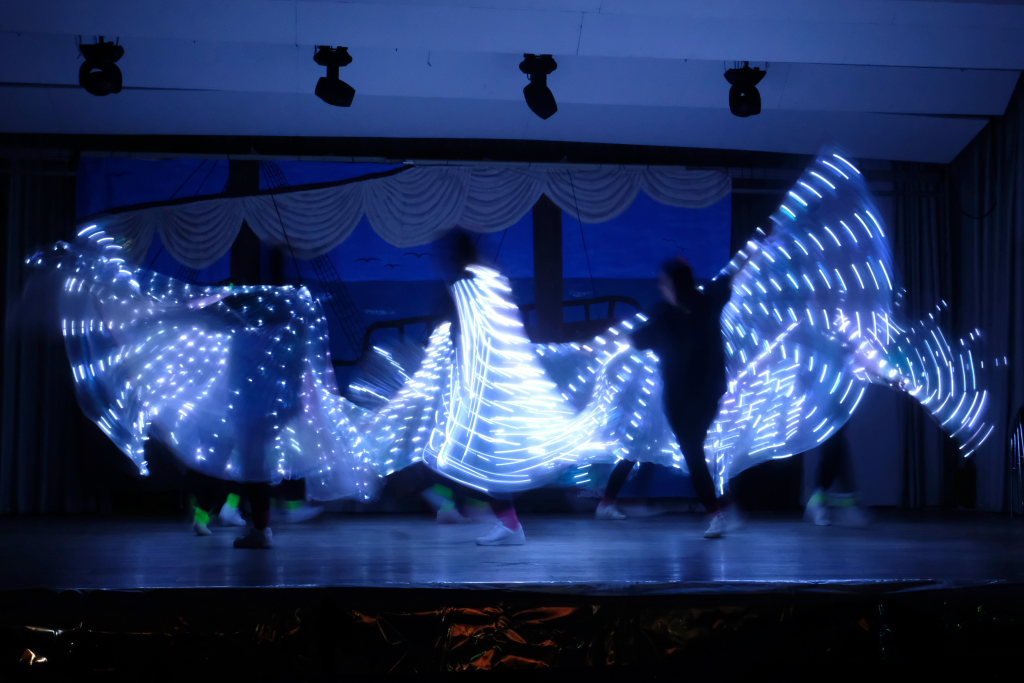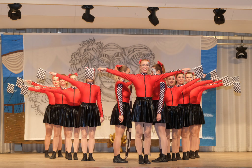 Wie heißt es immer: Das Beste kommt zum Schluss. Und tatsächlich hatten die Programmmacher sich das Beeindruckenste bis zum Schluss aufgehoben: den Mädelstanz. Feengleich und entsprechend flügelschlagend schwebten die Tänzerinnen bei Schwarzlicht über das Bühnenparkett. Dabei leuchteten ihre Flügel im ersten Teil des Tanzes wie die edelstein-besetzten Flügel eines Schmetterlings. Nach deren „Abwurf“ gaben die Zunftmädels richtig Gas und begeisterten die Narren im Saal.