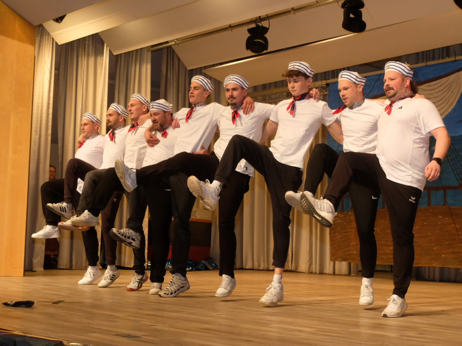 Beim großen Finale, zu dem alle Akteure noch einmal auf die Bühne kamen, bekam das Publikum dann auch die gemeinsame Zugabe von Männertanzgruppe und Mädels.