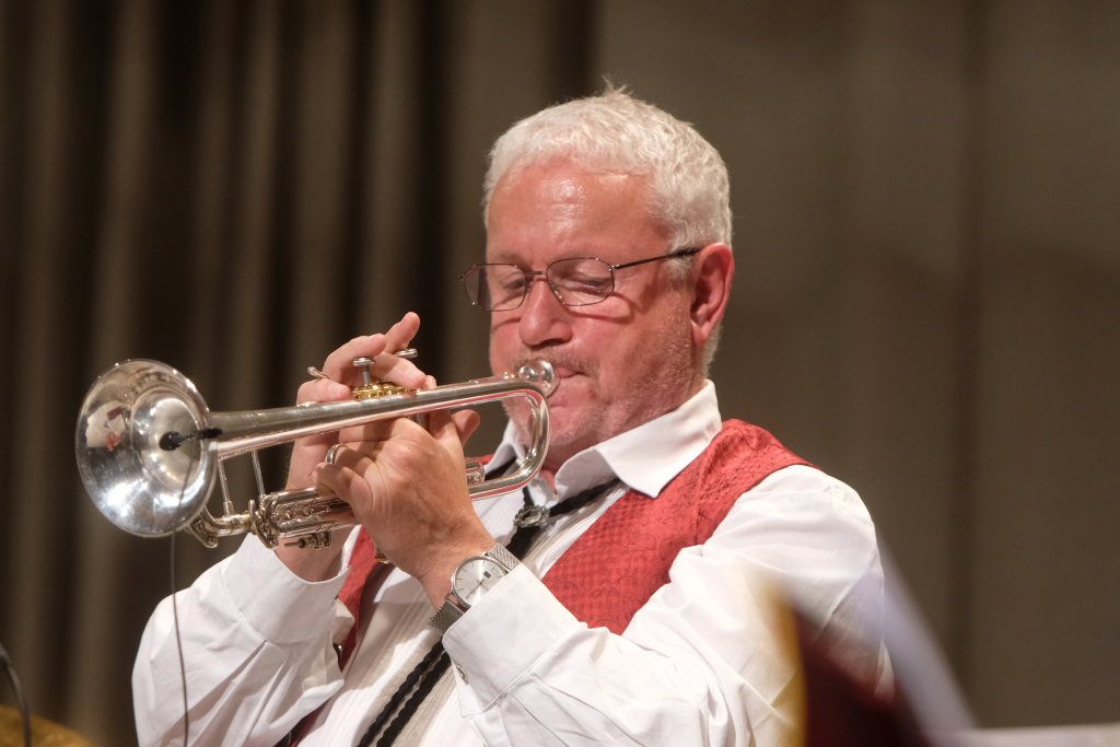 Danach war wieder „Der Alte Dessauer Zeit“-Trompeter Markus Elser – er verzauberte – wieder unter dem Dirigat von Simon Föhr – den ganzen Saal. Auch der Wurzacher Posaunist Jürgen Schad kam noch zu Solisten-Ehren bei den „Gablonzer Perlen“. Wie sagten es die Altvorderen Musikanten schon immer: „Oin gscheider Marsch muss sei“. Folglich gaben sie (und das Publikum) noch einmal alles beim Florentiner Marsch.