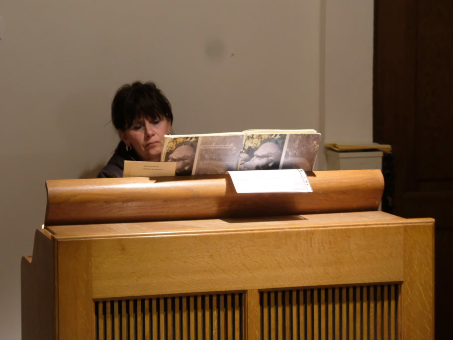 Nach der Lesung durch Gisela Brodd (Bild) und dem Evangeliumswort mit dem passenden Bild des brennenden Dornbusches „Mose,leg deine Schuhe ab, denn der Ort, wo du stehst, ist heiliger Boden“ tauchte Pfarrer Maier in die Geschichte der Kapelle ein und setzte sich mit der Frage, „was ist heilig?“, auseinander. Die Konsekration (Weihe) der Kapelle erfolgte am 7. Oktober 1482, zu der ein Weihbischof aus Konstanz angereist war. „Von dieser Weihe aus schließt man auf die Errichtung des Spitals, da keine Stiftungsurkunde mehr vorhanden ist.“