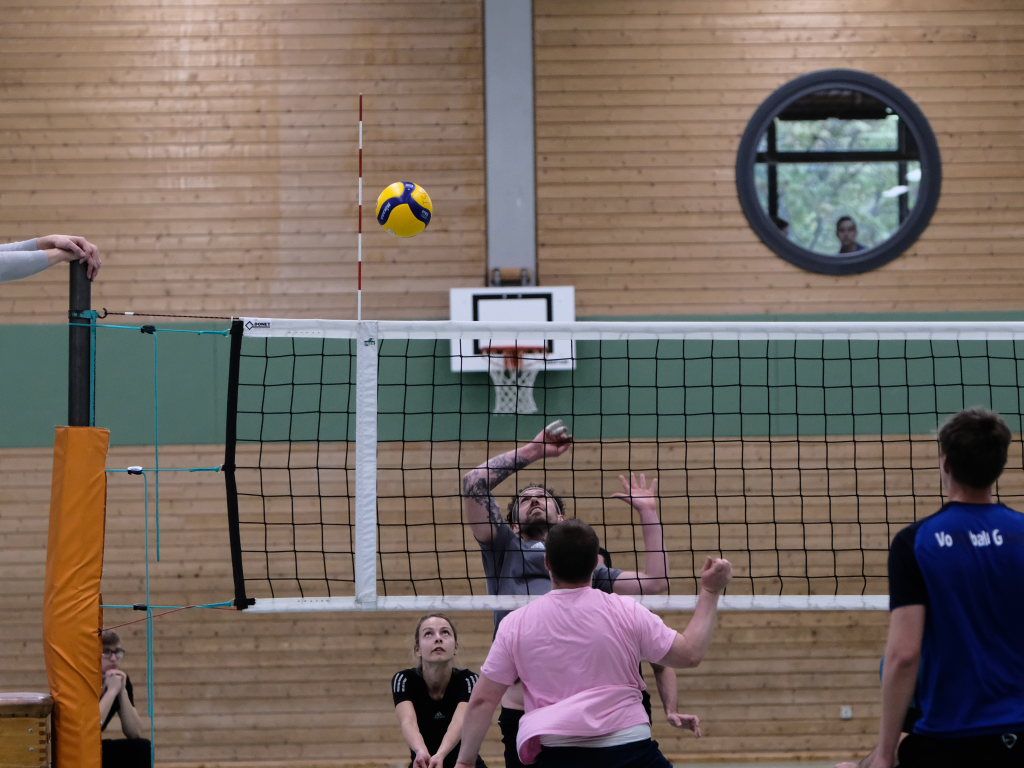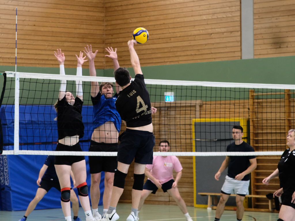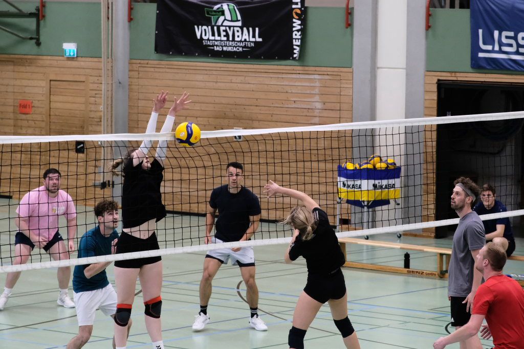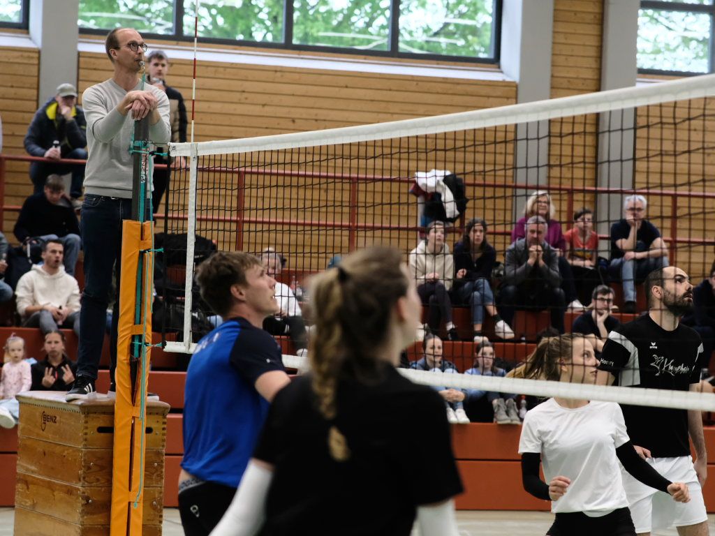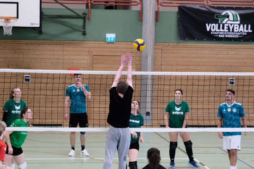 Bad Wurzach – Zwölf Mixed-Mannschaften spielten am vergangenen Samstag (20. April) die diesjährige Stadtmeisterschaft im Volleyball aus. Weil eine Mannschaft kurzfristig absagte, mussten die Veranstalter um Sascha, Uwe und Regina Dargel improvisieren: So kam das Team Küche unverhofft noch zu einem Einsatz, um einen reibungslosen Turnierablauf zu sichern.