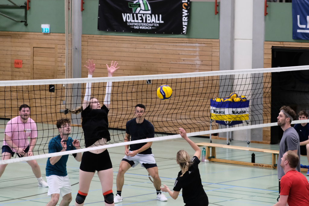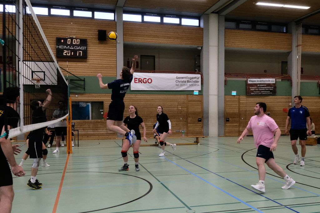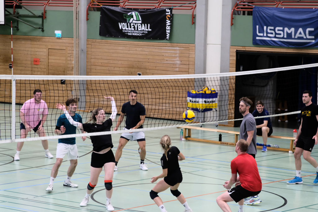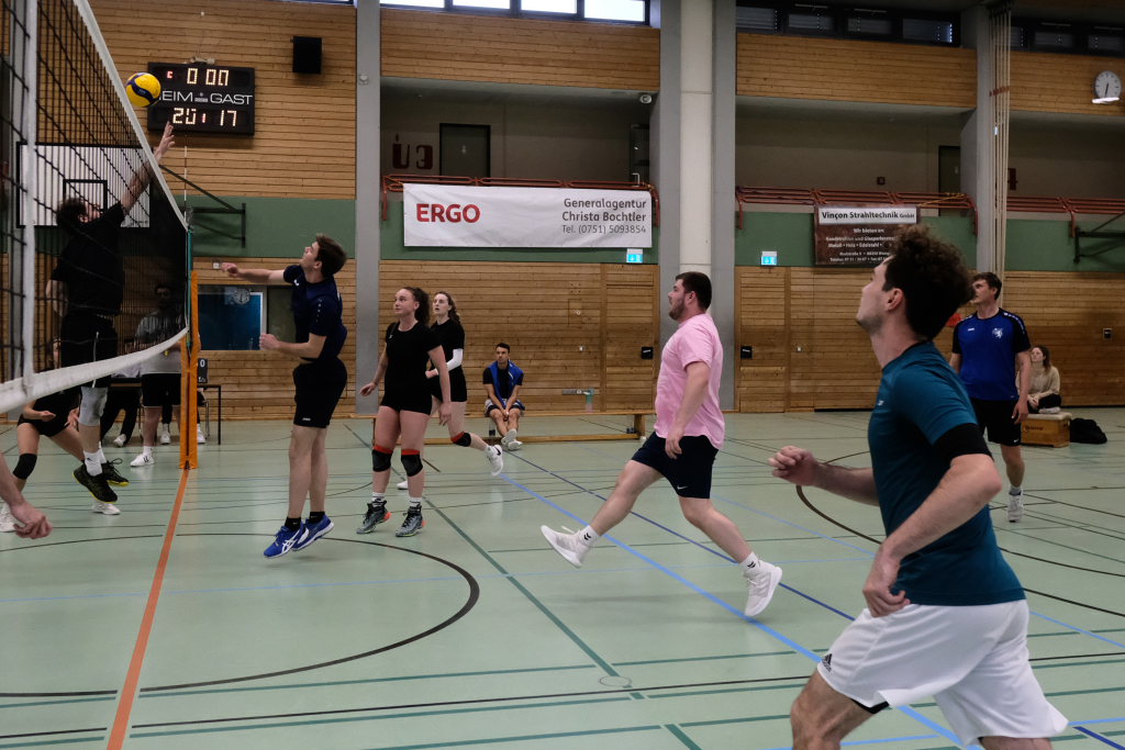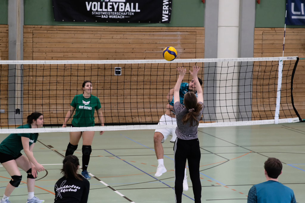 Bad Wurzach – Zwölf Mixed-Mannschaften spielten am vergangenen Samstag (20. April) die diesjährige Stadtmeisterschaft im Volleyball aus. Weil eine Mannschaft kurzfristig absagte, mussten die Veranstalter um Sascha, Uwe und Regina Dargel improvisieren: So kam das Team Küche unverhofft noch zu einem Einsatz, um einen reibungslosen Turnierablauf zu sichern.