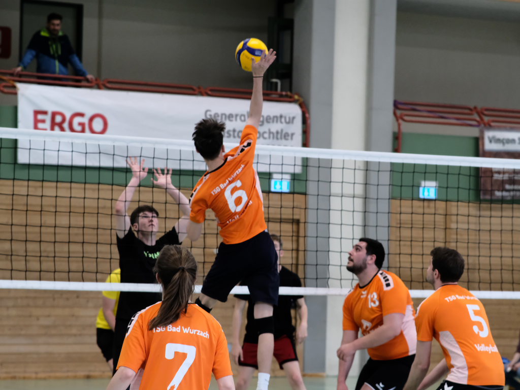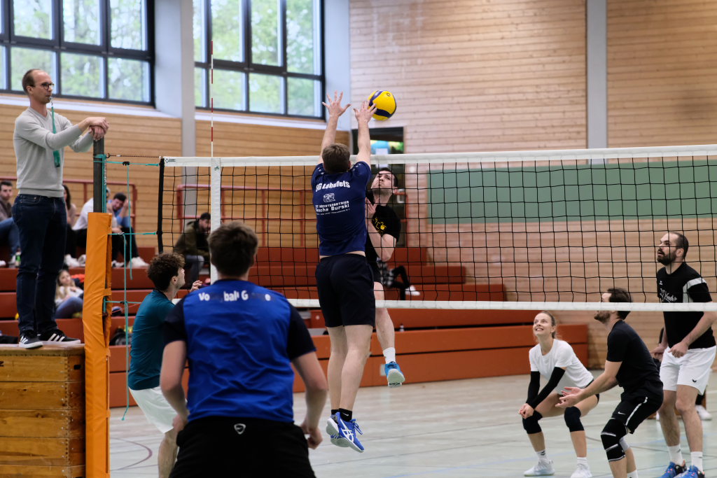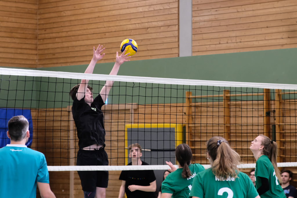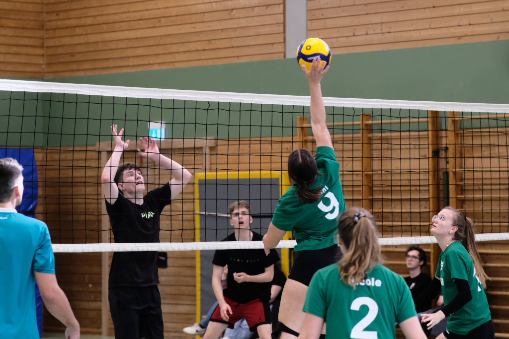 Bad Wurzach – Zwölf Mixed-Mannschaften spielten am vergangenen Samstag (20. April) die diesjährige Stadtmeisterschaft im Volleyball aus. Weil eine Mannschaft kurzfristig absagte, mussten die Veranstalter um Sascha, Uwe und Regina Dargel improvisieren: So kam das Team Küche unverhofft noch zu einem Einsatz, um einen reibungslosen Turnierablauf zu sichern.