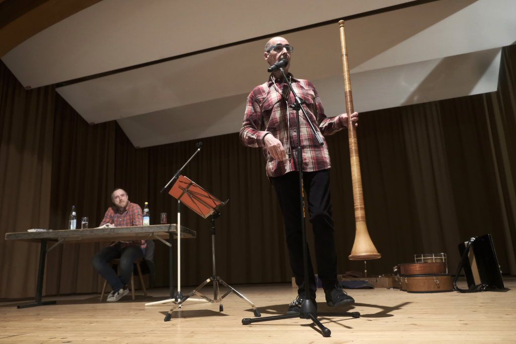 Was wäre Bitterwolf ohne Musik, für die es viel Disziplin bedürfe. Und so sangen (fast) alle mit, als er das Grüß-Gott-Lied anstimmte. Nicht fehlen durfte bei seinen musikalischen Exkursen auf der Wurzacher Gemarkung natürlich eine Soloeinlage mit dem auf dem Deckengemälde der Stadtpfarrkirche St. Verena abgebildeten urtypischen Wurzacher Instrument, dem Piffel, der „schwäbisch sparsamen Version des Alphorns“.
