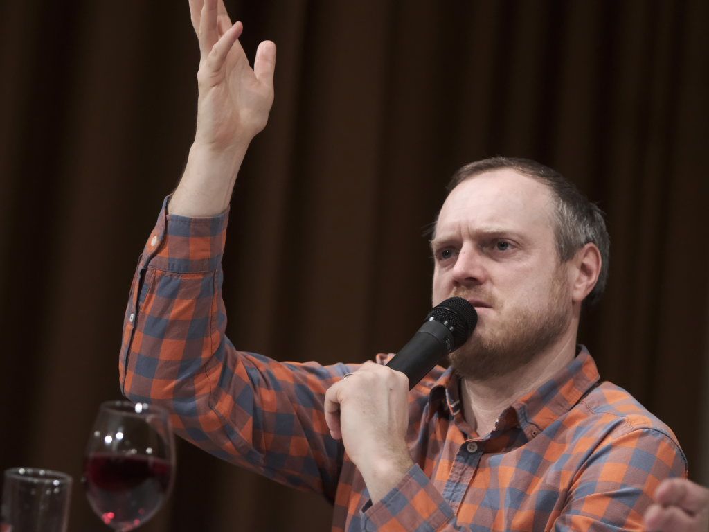 Heyer, der Wurzacher Wurzeln hat, ging in seinem schwäbischen Poetry-Slam, zu dem Bitterwolf mit seiner Fußrassel fleißig mitrappte, auf viele schwäbische Eigenheiten ein: Dass etwa die Suppe bei den Oberschwaben noch in Sauce eingetunkt wird, dass der Babybrei schon nach Maultaschen schmeckt und dass den kleinen Kindern beim Zubettgehen aus Sparbüchern vorgelesen wird.