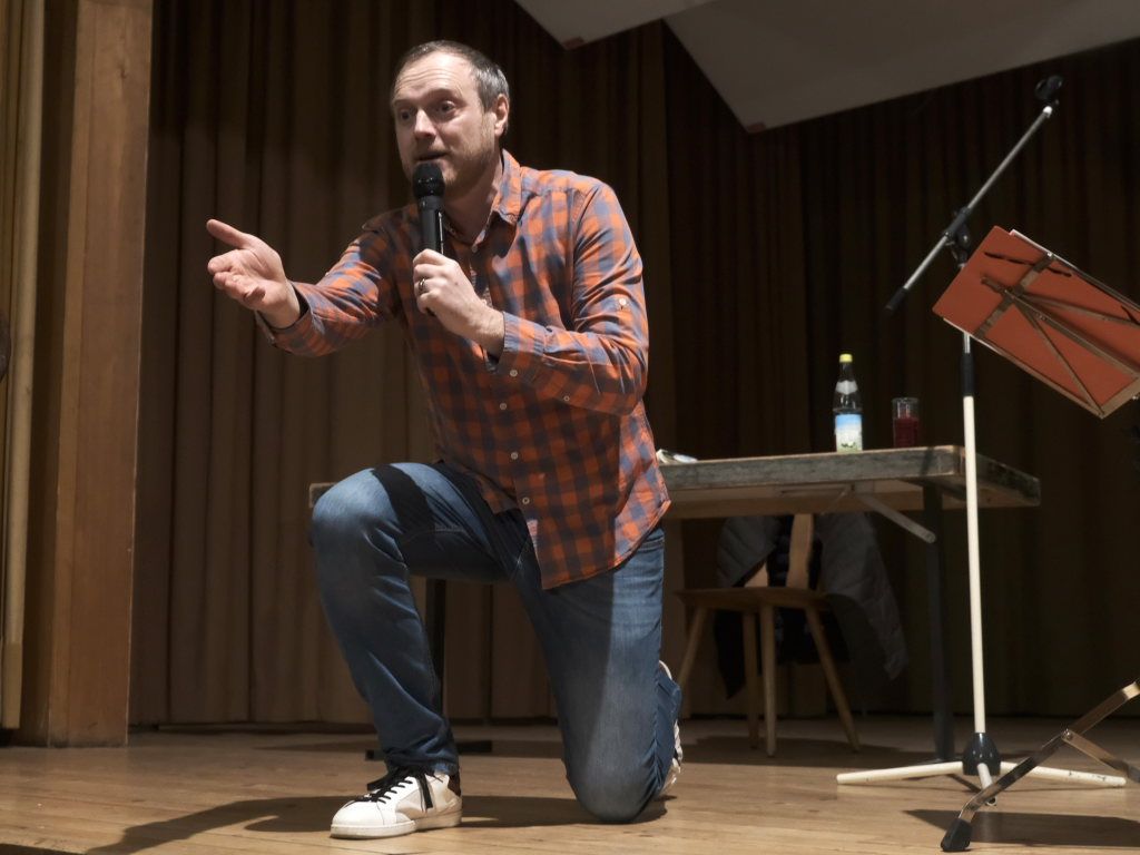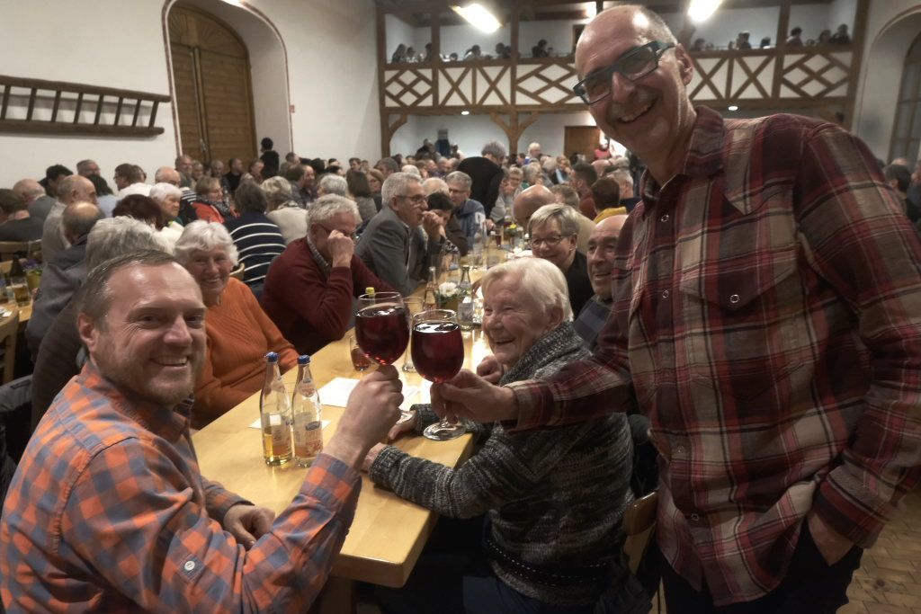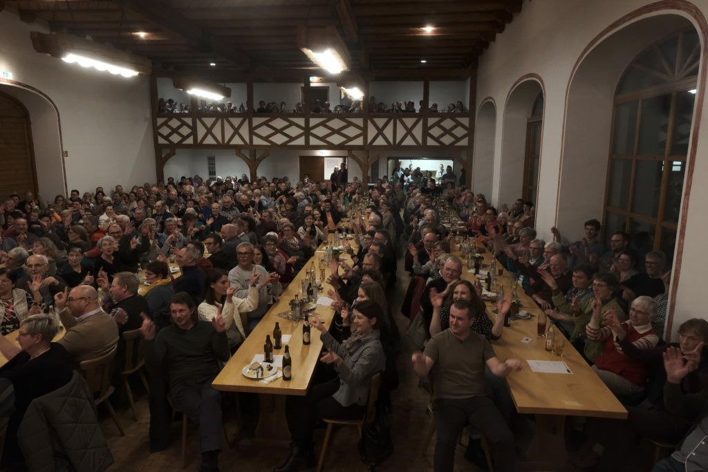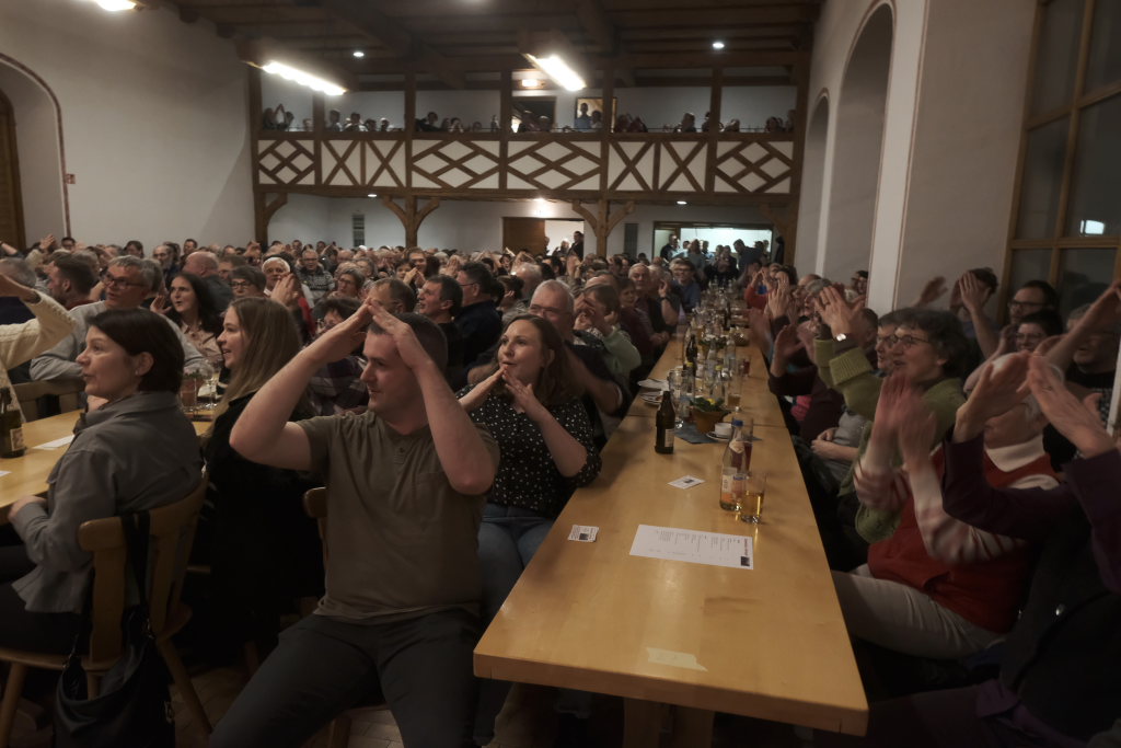 Diese starteten dann auch mit einem wunderbar-freundlichen gegenseitigen „Schulterklopfen“ des Publikums untereinander. Was Barny Bitterwolf mit Blick auf die Solidaritätswelle, die den Landwirten in den letzten Wochen entgegengeschwappt war, als symbolischen – typisch schwäbischen –Schulterschluss ansah.