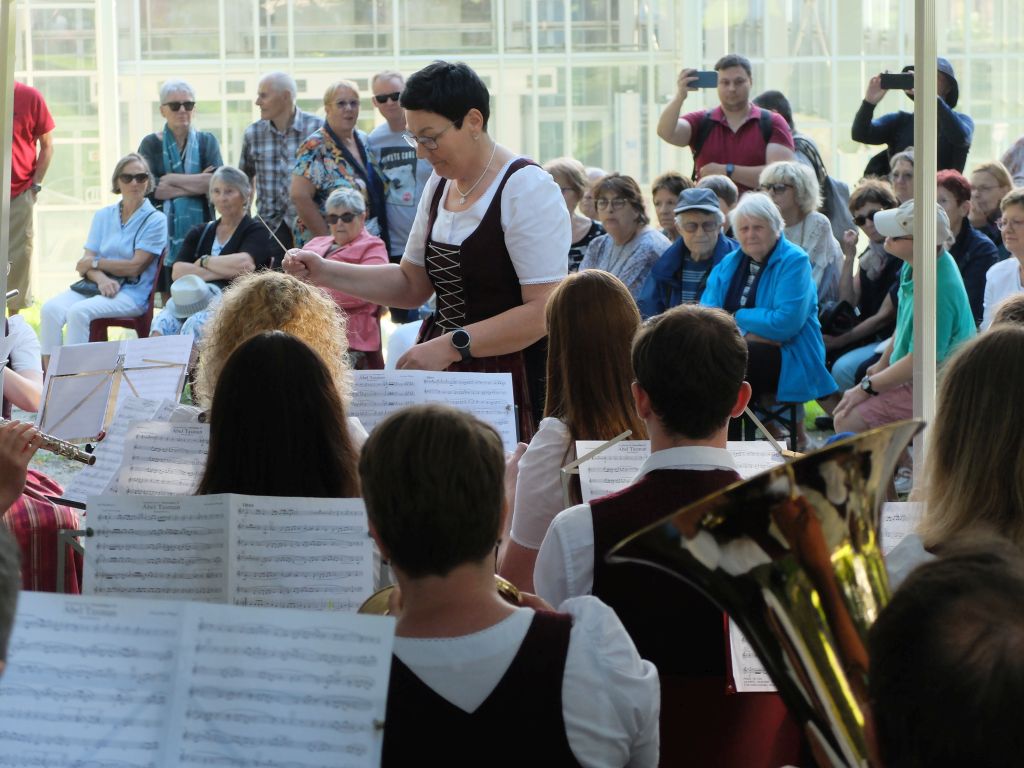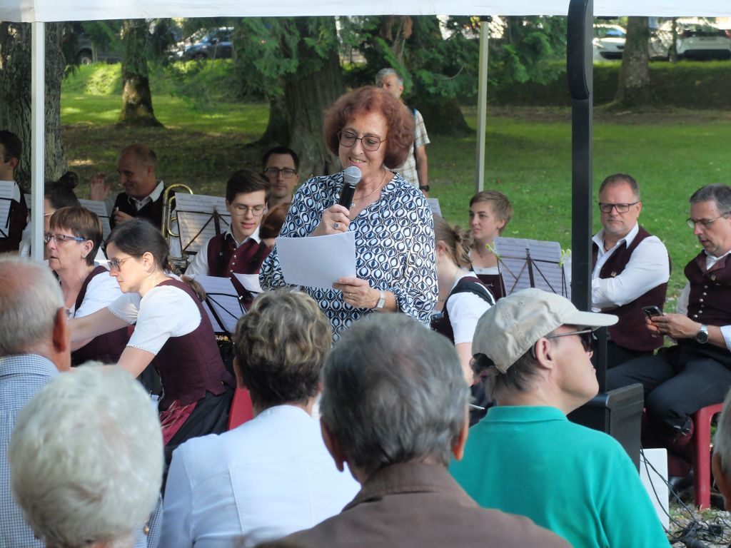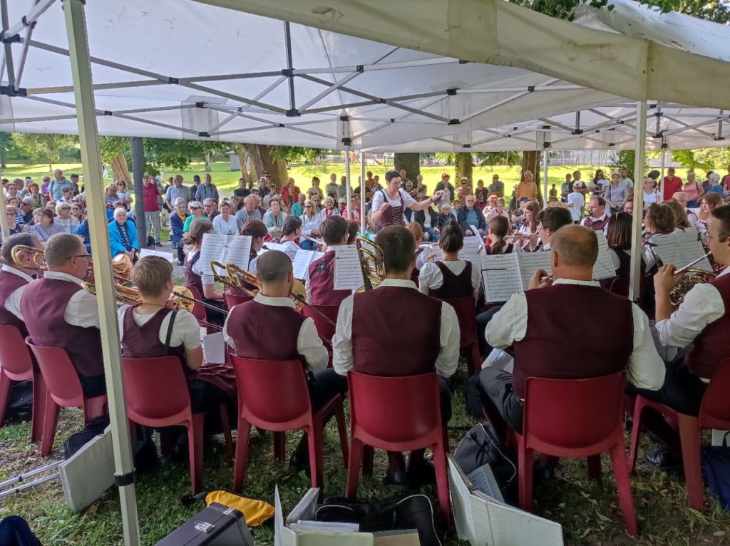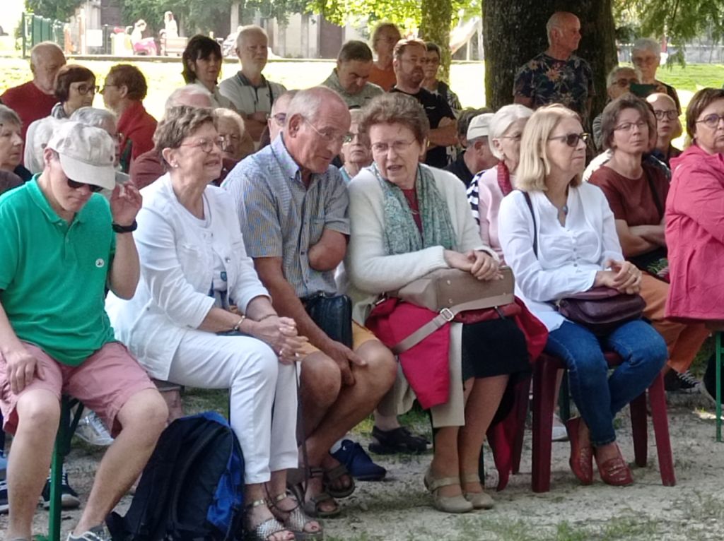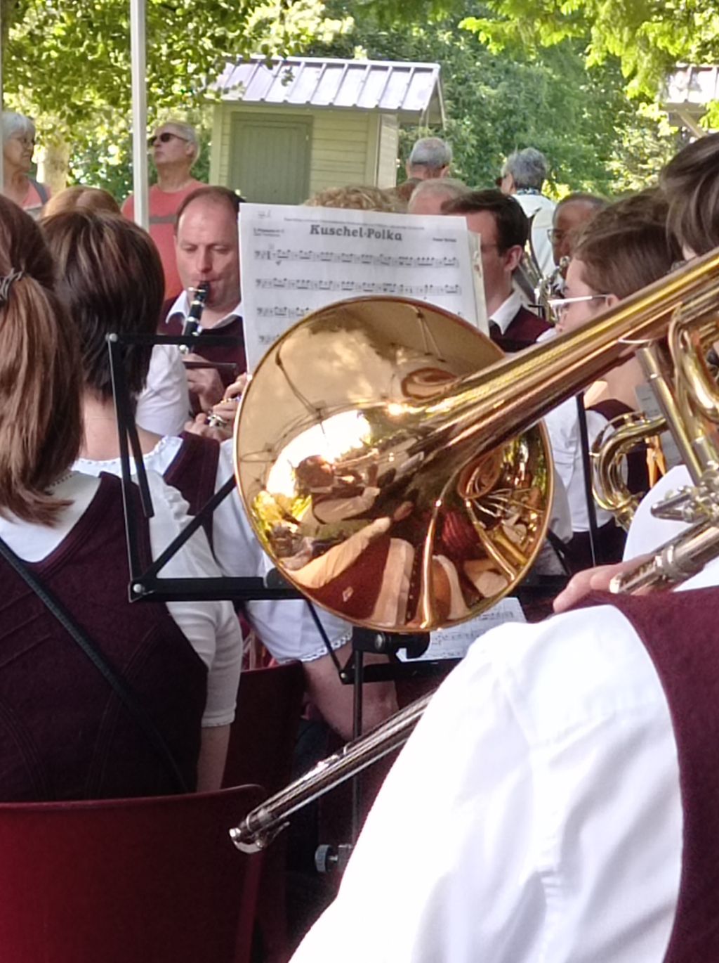 Auch der französische Wettergott hatte ein Einsehen und bescherte pünktlich zum Beginn des Konzerts der Stadtkapelle im Kurpark von Luxeuil strahlend blauen Himmel. Die Dirigentin Petra Springer hatte mit beliebten Stücken wie „Im Eilschritt nach Sankt Peter“, der „Kuschelpolka“ von Peter Schad und „Sweet Caroline“ ein abwechslungsreiches Programm zusammengestellt. Wie immer gab es zu den einzelnen Stücken kleine einleitende Texte – von Sabine Wächter verfasst, vorgetragen in französischer Übersetzung. Das Publikum ging begeistert mit und griff auch den Tipp, wie man ein Zusatzstück zu hören bekommt, sofort auf. „Zugabe! Zugabe!“ schallte es der Kapelle entgegen, die dann mit ihrem letzten Stück „Wir Musikanten“ von Kurt Gäble einen besonderen Gruß an ihre Kollegen von der „Harmonie Municipale de Luxeuil“ richtete. Beim abendlichen Barbecue am Festplatz beim kleinen Teich, zu dem die Stadt einlud und das die Mitglieder der französischen Stadtkapelle mit leckeren Salaten und Kuchen bereicherten, kam dann auch das mitgebrachte Bier zum Einsatz. Ein wunderbares, fröhliches Fest der deutsch-französischen Freundschaft.