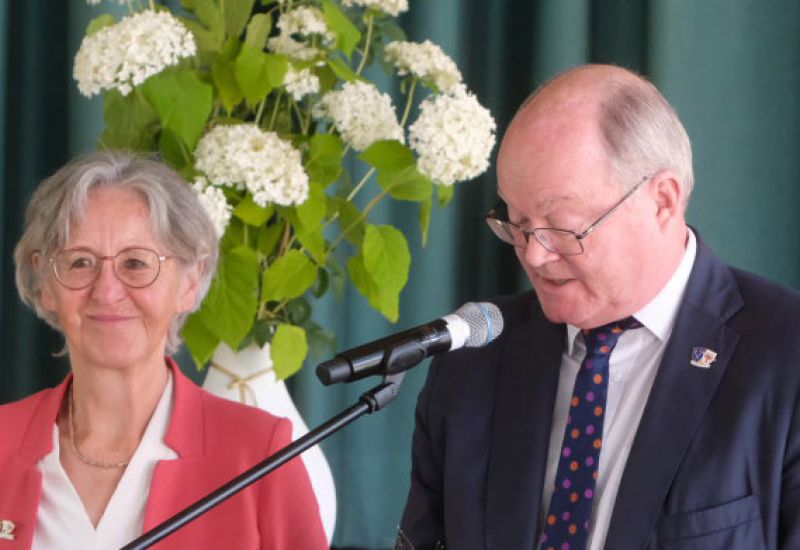 Seit fast einem Vierteljahrhundert ermögliche diese Partnerschaft ehemaligen Internierten und ihren Familien die Rückkehr an jenen Ort, an dem so viele Inselbewohner inhaftiert gewesen waren, und ehre diejenigen, die nicht auf ihre Inselheimat zurückkehren konnten. Sie habe unzählige Freundschaften und Austausche gefördert, insbesondere von Musik- und Theatergruppen – und zu mindestens einer Heirat geführt. Eine seiner schönsten Erinnerungen an seine Besuche sei gewesen, einen am Salvatorkolleg Englischkurs zu unterrichten. „Ich habe ihn sehr genossen und ich glaube die Schüler auch, obwohl ich nicht wieder eingeladen wurde.“ Er beendete seine Rede mit: „Möge die Bad Wurzach-St. Helier-Partnerschaft weiterhin erfolgreich sein.“