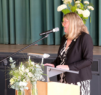 „Ich freue mich, dass sie alle mit uns heute den Blutfreitag begehen. Bischof Dr. Klaus Krämer hat das Heilig-Blut-Fest in diesem Jahr unter das Leitwort gestellt: ,Als Pilger der Hoffnung mit Christus unterwegs‘, sagte Bürgermeisterin Alexandra Scherer (Bild) bei der Begrüßung. Dies passe sehr gut zu dem Sinn dieses Festes. Mit ihm böten die Stadt, die Kirchengemeinde St. Verena und die Salvatorianer auf dem Gottesberg eine Wallfahrt an, bei der alle ihren Glauben vertiefen konnten. „Denn unser Heilig-Blut-Fest ist ein Glaubensbekenntnis.“