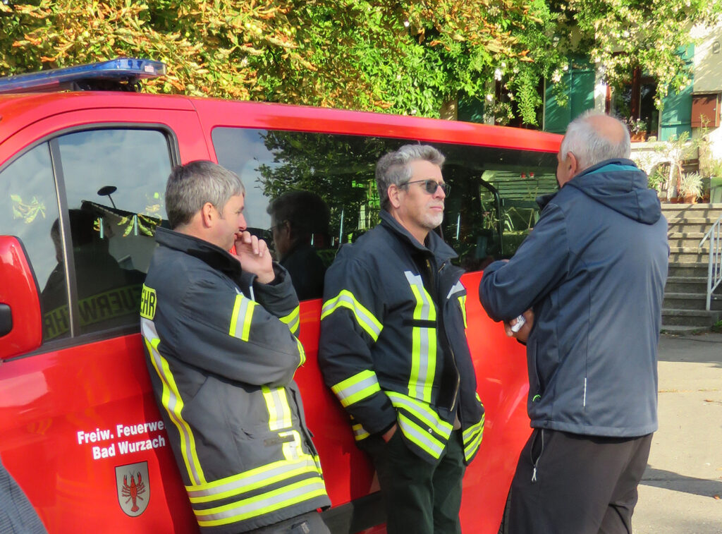 Stellvertretend für alle Feuerwehrmänner, die Dienst taten, zeigen wir Timo Hartmann (links) und Wolfgang Müller von der Abteilung Arnach. Es waren alle zehn Abteilungen der Freiwilligen Feuerwehr Bad Wurzach im Einsatz.