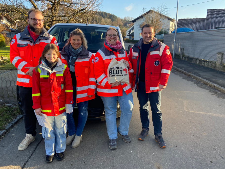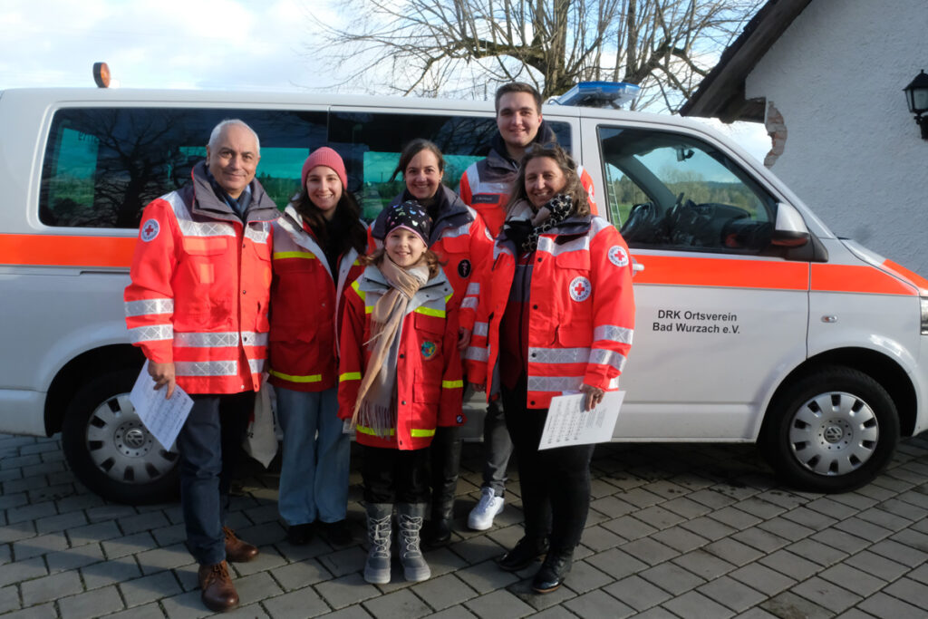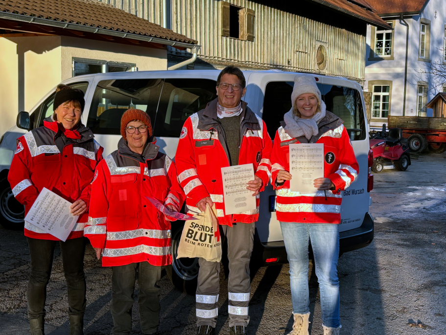 Samstagnachmittag am Vorabend des 2. Advents. Unterwegs mit einem ganz besonderen Sechser-Team des DRK-Ortsvereines Bad Wurzach in Haidgau bei der DRK-Aktion „Licht für die Alten“. Denn neben Fahrer Paul Burrasch, den beiden JRK-Mitgliedern Mira Schad und Pauline Rösch waren mit Petra Greiner, der Vorsitzenden des DRK-Ortsvereines, und Conny Ludescher (dessen Schriftführerin) zwei Vorstandsmitglieder dabei. Internationale Unterstützung bekam die Besatzung des Teams noch durch Ignazio Giacalone aus Sizilien. Genau 15 Mal gab es an diesem Freitagnachmittag mit diesem Team das Ritual in Haidgau und Umgebung: Gemeinsam mit den besuchten, meist alleinstehenden Leuten singen die Rotkreuzler ein oder zwei Weihnachtslieder, dazwischen trägt das JRK-Mitglied im Team ein kleines Weihnachtsgedicht vor, ehe dann die Gruppe die DRK-Jutetasche mit den Geschenken an die Senioren übergibt. „Die Menschen haben mit glänzenden Augen mitgesungen. Es ist immer berührend, wie sie sich freuen, dass man Zeit mitgebracht hat”, freut sich Petra Greiner.