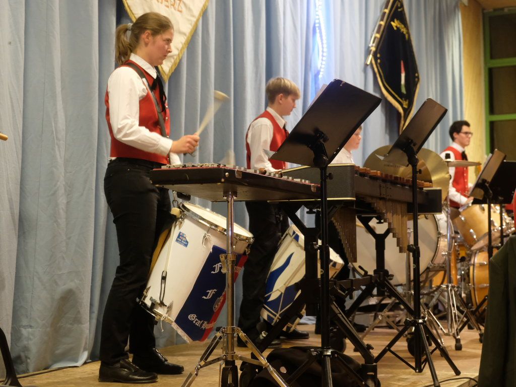 „Voller Energie und Emotionen ziehen unsere Schlagzeuger in die Schlacht“, so kündigten die beiden jungen, charmanten Ansagerinnen Franziska und Marina Gütler dabei ein ganz besonderes musikalisches Ereignis an, für das der Fanfarenzug Graf Humbrecht aus Hummertsried mit seinen Trommeln den Schlagwerkern das passende „Handwerkszeug“ zur Verfügung stellte.