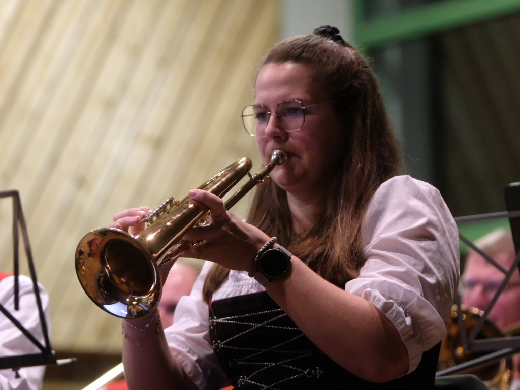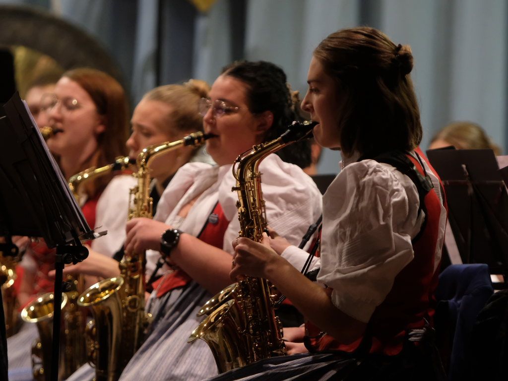 In diesem Stück kam wie auch beim letzten Programmstück auch die besondere Liebe von Dirigent Bernd Butscher zur böhmisch-mährischen Blasmusik inklusive der Liebe zu „seinem“ Instrument zum Ausdruck. Mit dem Konzertmarsch „An neuen Ufern“ von Martin Hutter und Sebastian Höglauer sollte das gelungene Doppelkonzert zu Ende gehen. Damit richteten die Musikerinnen und Musiker der Musikkapelle Eggmannsried ihren Blick nach vorne. Er symbolisierte einen Moment des Aufbruchs – „dort wo etwas Neues beginnt, Mut und Vorfreude zusammenkommen und neue musikalische Wege entstehen.“ O-Ton der beiden Ansagerinnen.