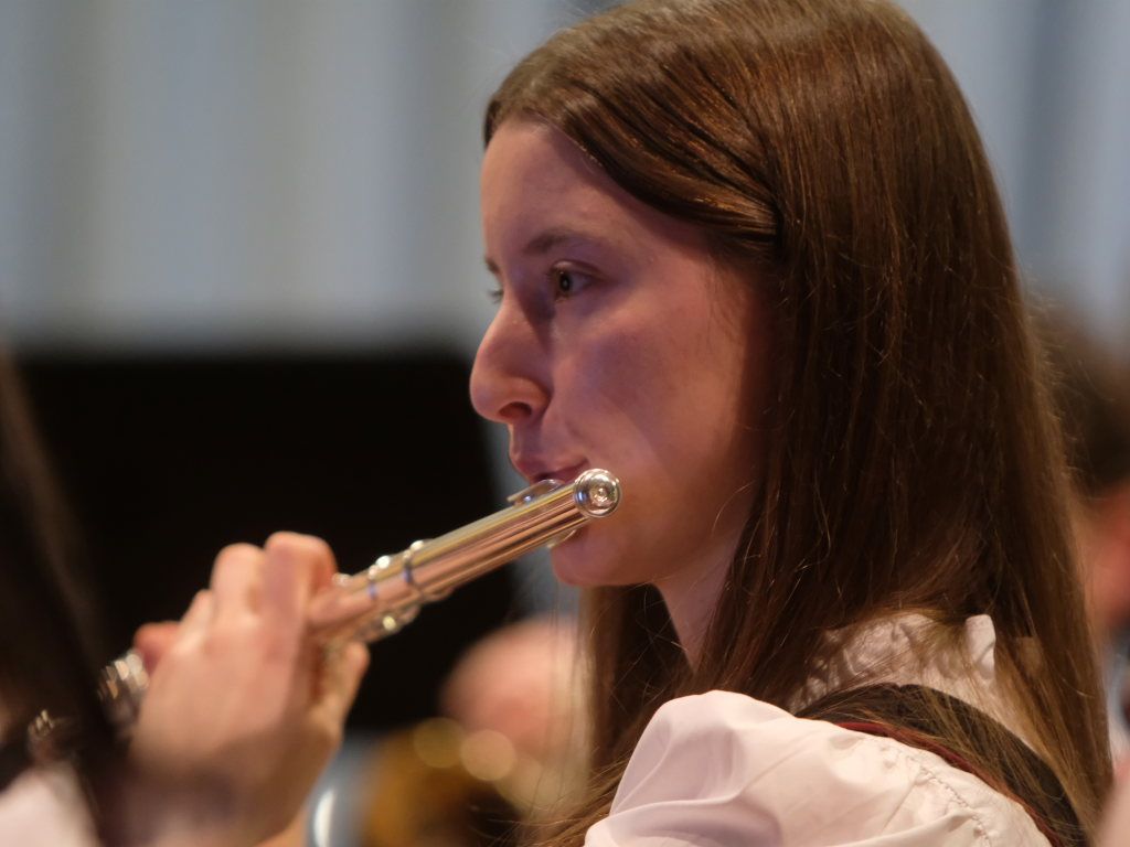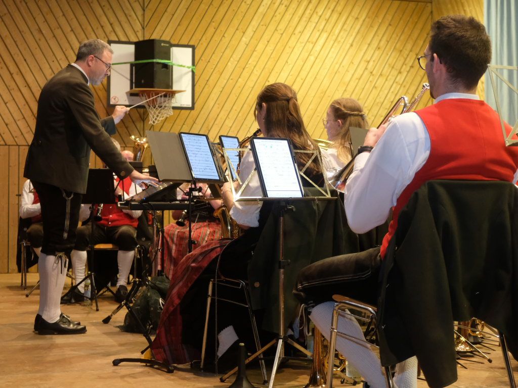 Zu „The castle in the Highlands“ von Raphael Strasser, einem jungen österreichischen Komponisten, hatte sich Ansagerin Marina Gütler etwas ganz besonderes einfallen lassen: Sie ließ einfach ChatGPT einen entsprechenden Text zu dem mit keltisch-schottischen Themen gespickten Konzertwerk ausspucken. „Die ersten Sonnenstrahlen werfen ihr Licht auf das weitläufige Gebiet in den schottischen Highlands. Die Frühsonne lässt den Morgennebel langsam verschwinden und legt die darunter liegenden, nassen Felsen frei, die wie Diamanten in ihrem Licht glitzern. Auf einer Anhöhe neben einem klaren Bergsee steht ein mächtiges Bauwerk. Hohe Türme und dicke Mauern sichern die gigantische Festung, in der reges Treiben herrscht.