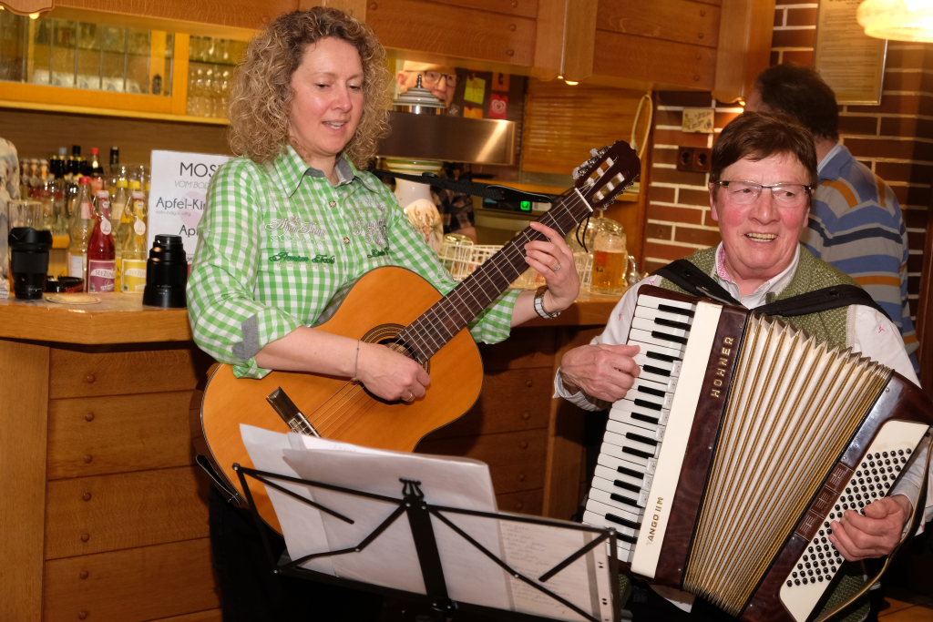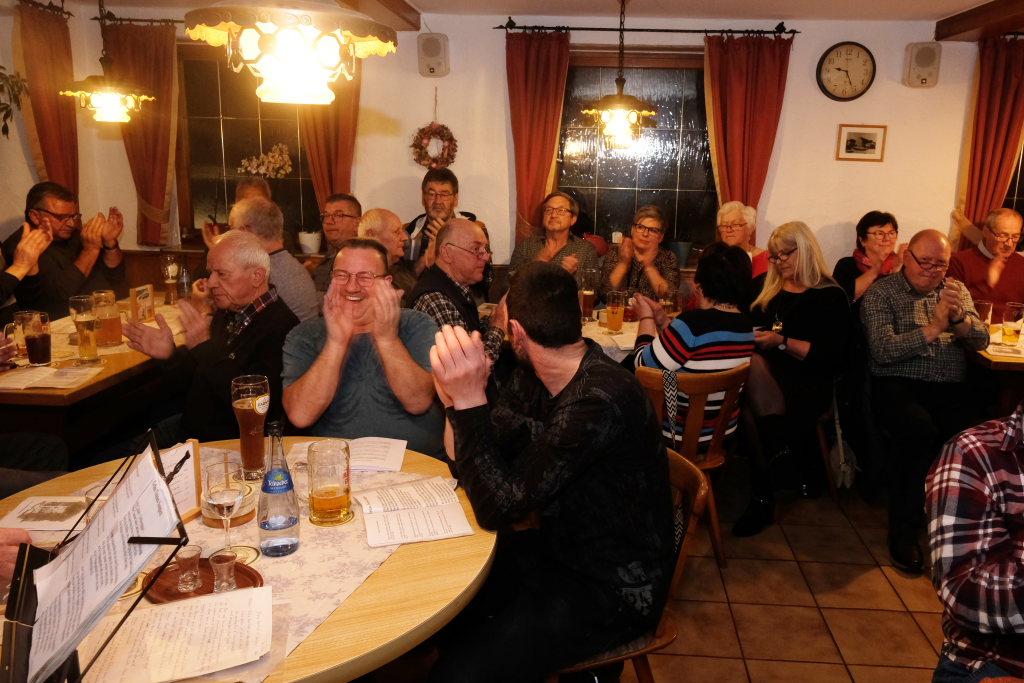 Günter Musch, Walter Strobel Alexander Strobel und Florian Strobel begannen ihre musikalische Reise durch die Wirtshäuser in der „Wacht am Rhein“. Günter Musch und Walter Strobel waren beide Teile der legendären „Ziegelbacher“. Dass es diese A-Capella-Formation nicht mehr gibt, schien den Beiden allerdings erst aufzugehen, als Florian Strobel sie während des Begrüßungsliedes darauf aufmerksam machte. Aber das hinderte die Gruppe, die darüber hinaus mit den Enkeln Frieda und Henry von Walter Strobel noch Verstärkung bekommen hatten – nicht daran, einige Lieder aus dem Repertoire der Ziegelbacher während ihrer Auftritte zum Besten zu geben. Darüber hinaus brachten sie auch alte Schlager zum Mitsingen wie „Mendocino“ und hatten auf eine ABBA-Melodie einen hymnischen Text aufs Wirthausmusizieren gelegt. Zusätzlich für gute Laune sorgte Günter Musch immer wieder mit seinen eingestreuten Witzen.