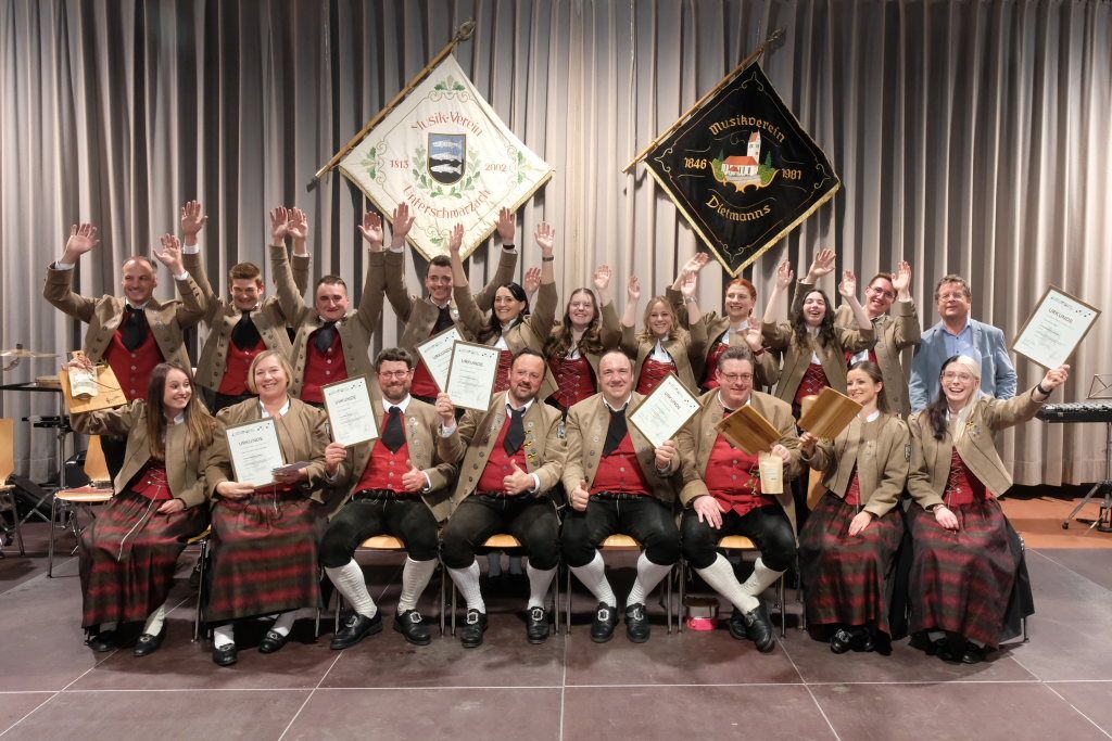 Dietmanns – Der stellvertretende Kreisvorsitzende des Blasmusikkreisverbandes Ravensburg, Peter Zauner, durfte bei dem Jahreskonzert in Dietmanns 22 Musiker mit Ehrennadeln für langjährige aktive Musikertätigkeit sowie mit Fördermedaillen für entsprechend lange Vorstandstätigkeit auszeichnen. Insgesamt belief sich die Anzahl der Jahre im Dienste der Blasmusik auf 365 Jahre.