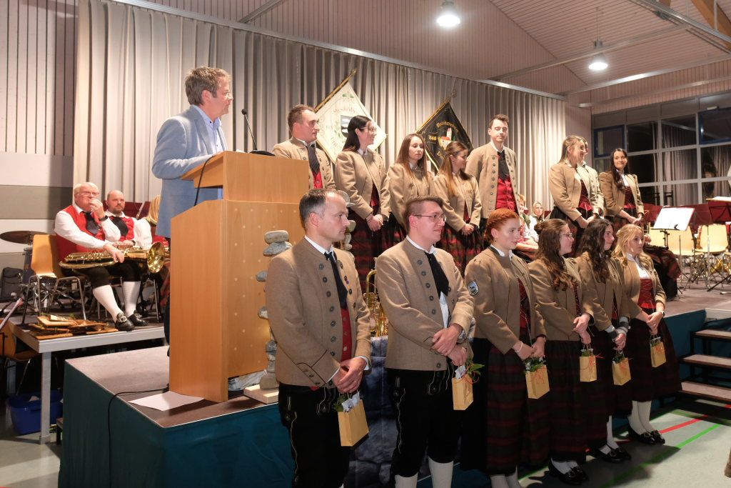 Sebastian Heber erhielt eine vereinsinterne Ehrung, da der Hornist zwar schon zum lebenden Inventar des Vereines zählt, er aber von seinem Heimatverein, dem MV Oberessendorf, für die Ehrung durch den Blasmusikverband vorgeschlagen wurde.
