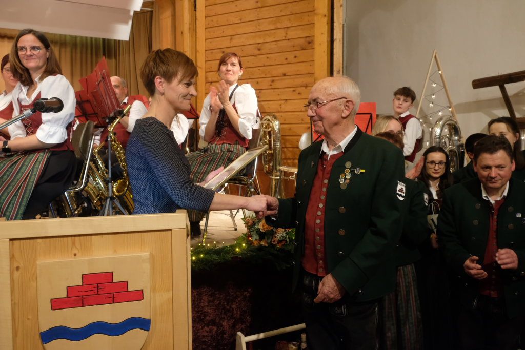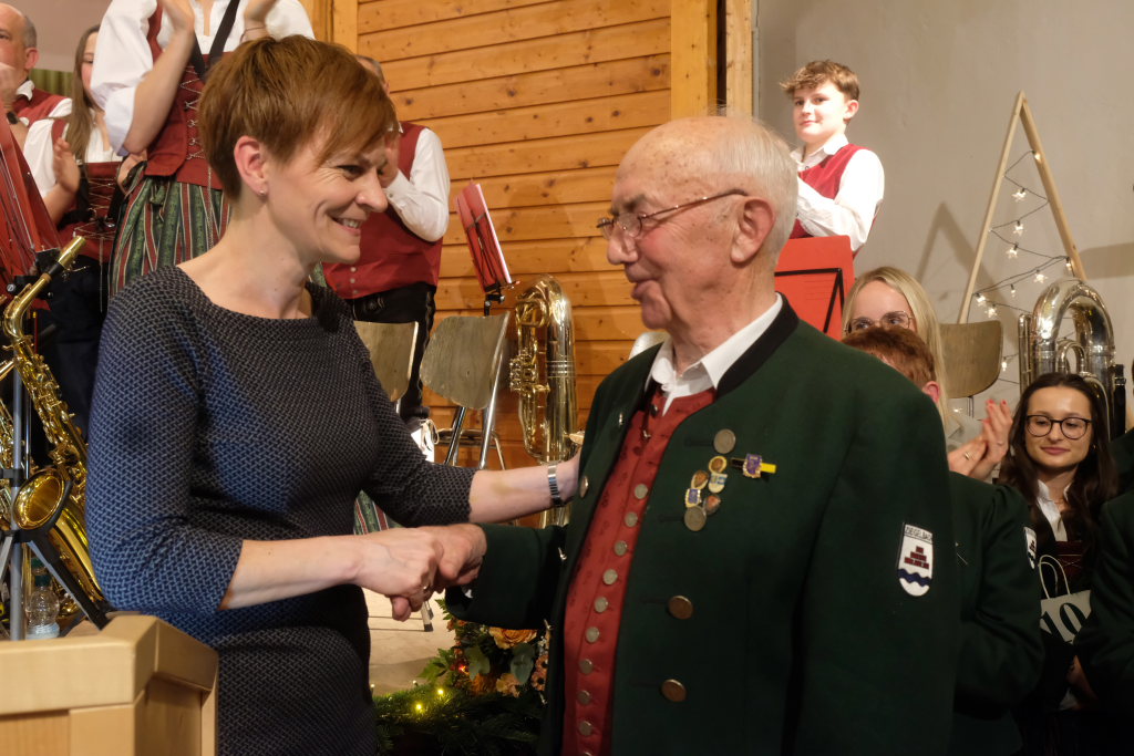 Zum Abschluss der Ehrungen wünschte sich Dagmar Drumm, dass angesichts eines immer mehr nachlassenden ehrenamtlichen Engagements, dass „euer Beispiel viele andere inspiriert, sich ebenso für ihren Musikverein einzusetzen.“ Sie hoffe aber auch, dass die politischen Vertreter dies zu schätzen wissen und alles tun, die Musikkapellen zu unterstützen und zu erhalten.