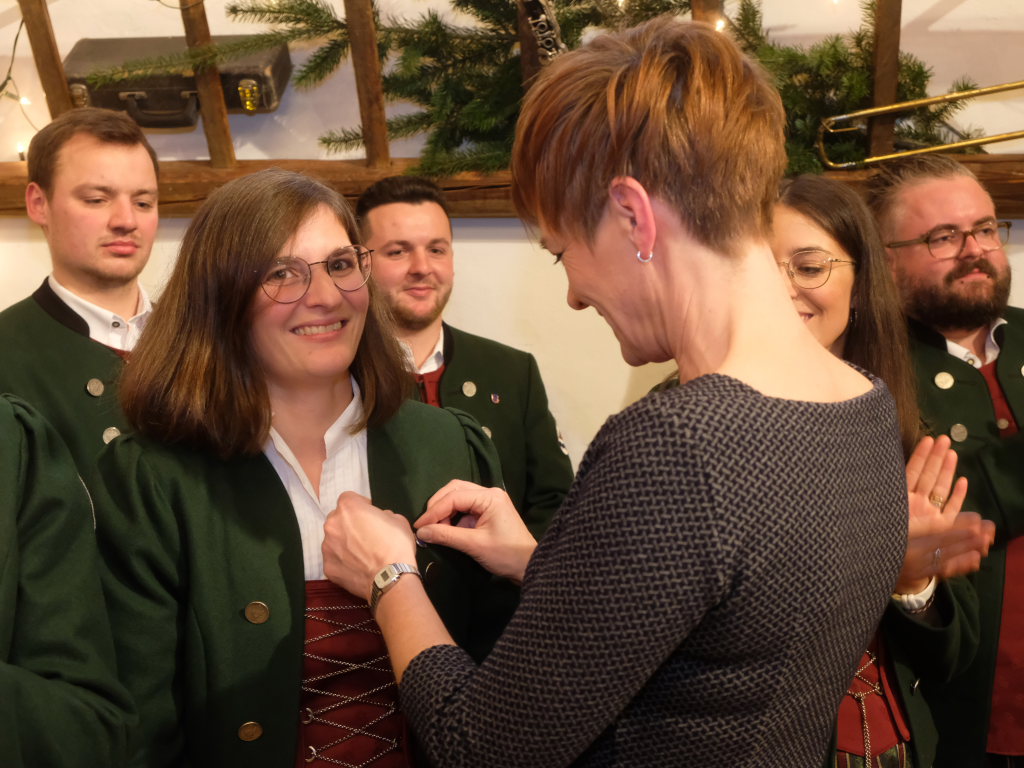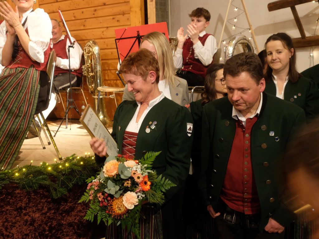 Dagmar Drumm, die die Musiker ehrte, kommt aus Karsee und spielt in der dortigen Musikkapelle das Flügelhorn. In ihrem kurzen Grußwort dankte sie den Musikerinnen und Musikern für ihr vorbildliches, ehrenamtliches Engagement für das Dorf und die Region. „Ohne dieses selbstlose Engagement wäre das Vereinsleben, wäre unsere Kulturlandschaft um so vieles ärmer.“ Ihr Dank galt dabei nicht nur den Musikern für die schönen Töne, sondern vor allem den Menschen für die ungezählten, unbezahlten Stunden im Hintergrund.