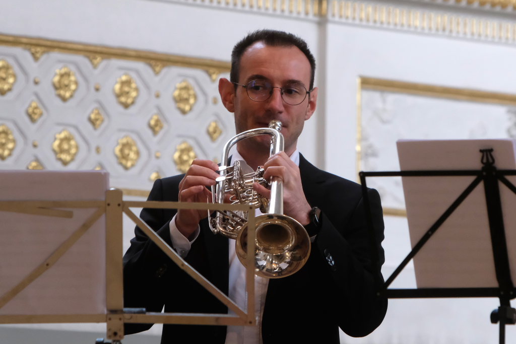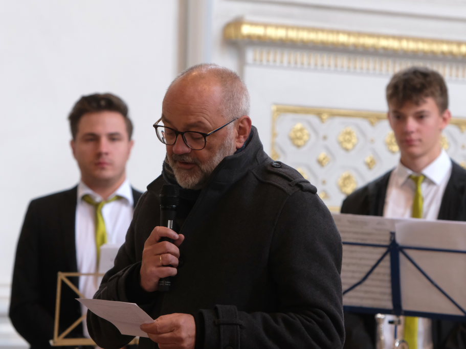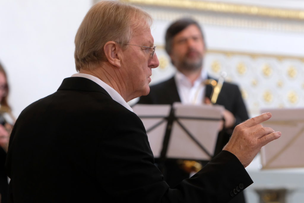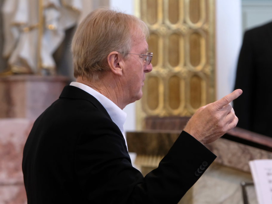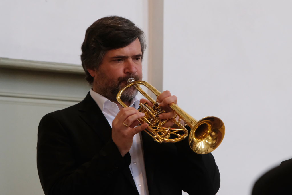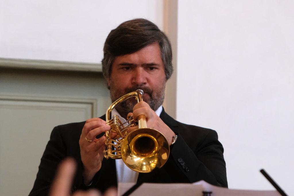 Der bereits erwähnte Peter Schad (Bild), Begründer der Schlossbläser, versammelte mit den ehemaligen Schlossbläsern zum zweiten Konzertteil eine illustre Gruppe von Musikern um sich, die allesamt der Musik mehr oder weniger treu geblieben sind.