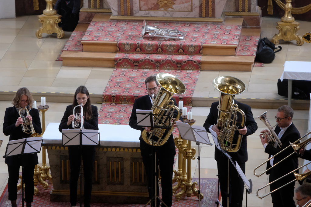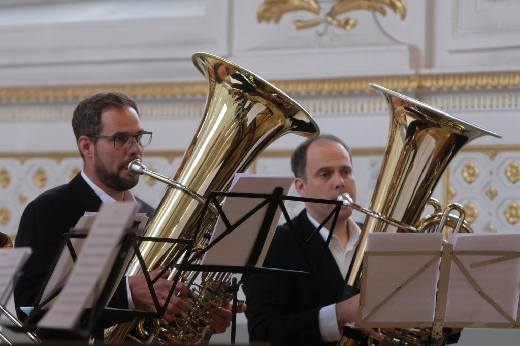 Mit dem Prelude aus „Te Deum“, älteren Fernsehzuschauern bekannt auch als Erkennungsmelodie von Eurovisions-Unterhaltungssendungen am Samstagabend, eröffneten die „jungen“ Schlossbläser den sonntagnachmittäglichen musikalischen Hochgenuss.