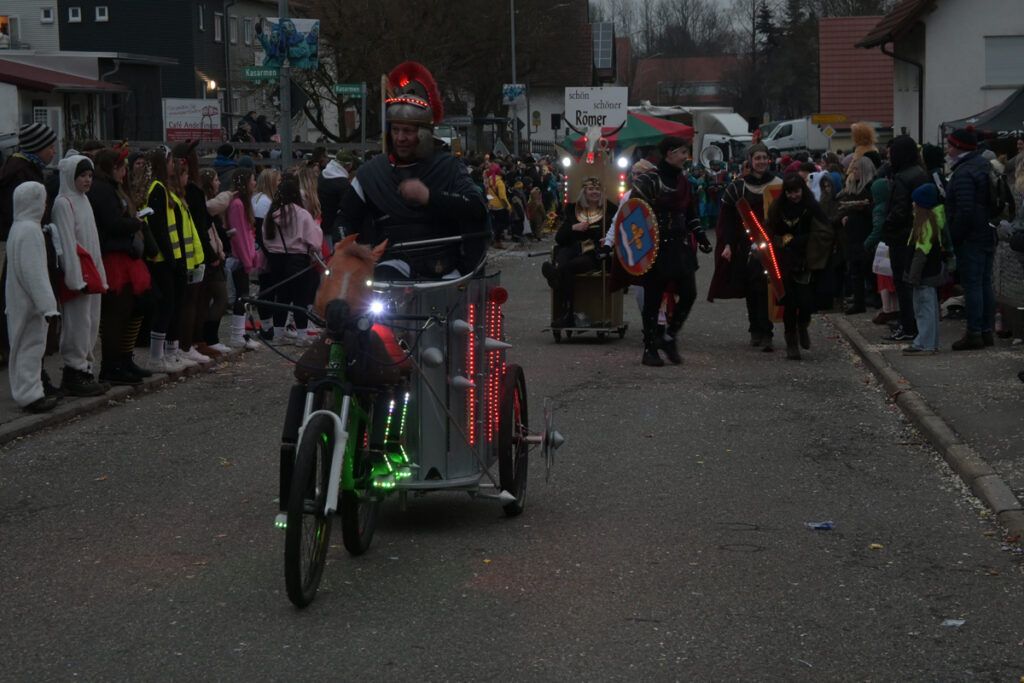 Bis in die Dämmerung hinein zog der Umzug durch den Ort, bevor sich die Narren schließlich auf dem Festgelände versammelten, um das Jubiläum gebührend weiterzufeiern.