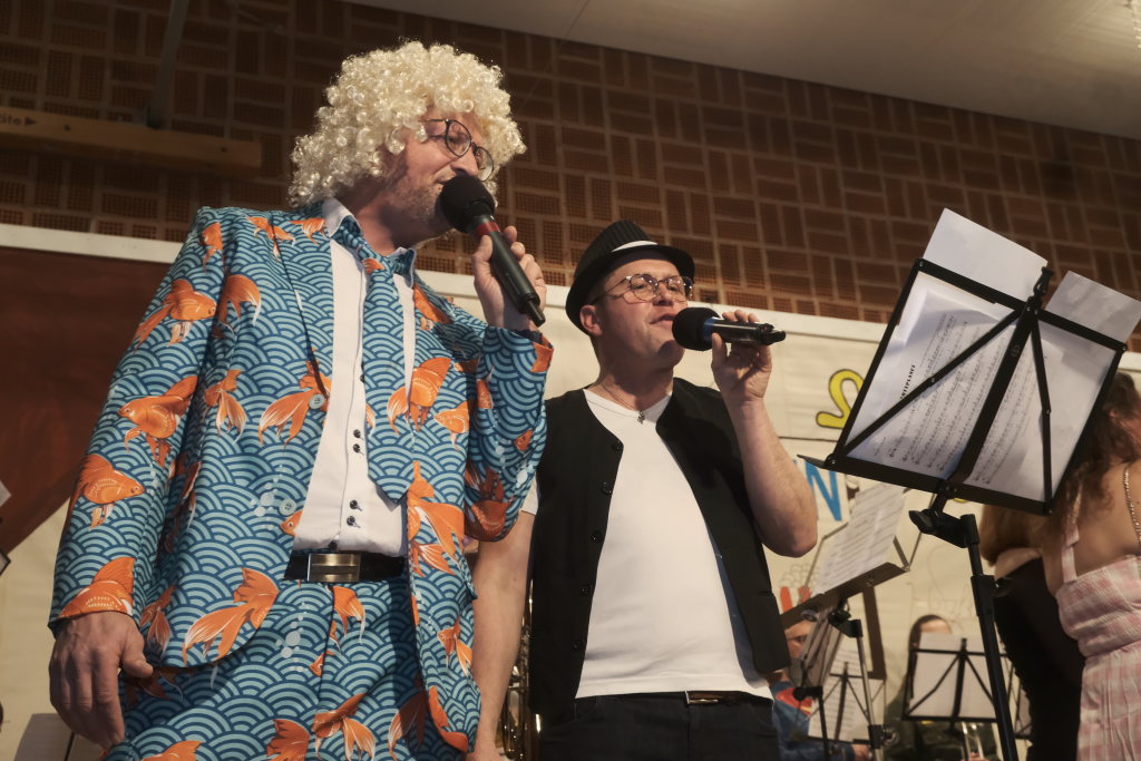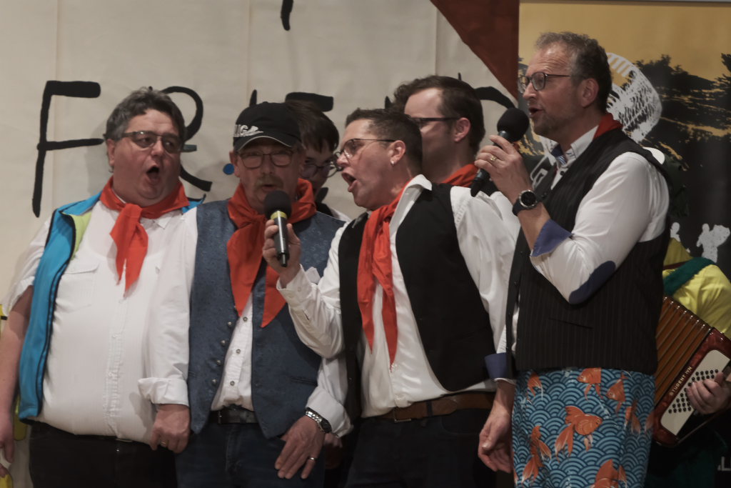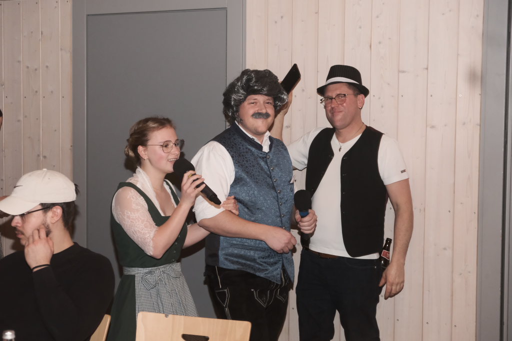 Beim traditionellen Stammtisch spießten Florian Bott und Markus Bendel – zum Teil auch selbstironisch – besondere Vorfälle im Dorfgeschehen auf. Etwa das vergessene Instrument beim Kurkonzert, oder das verwechselte Auto, oder die Pizzabestellung aus Bad Waldsee, die ganz konspirativ beim Adler in Molpertshaus übergeben wurde. Oder dass der Musikverein wegen der Satzungsänderung, die den Weg für ein Vorstandsteam freimachte, zu einer Fünf-Minuten-Mitgliederversammlung zusammenkommen musste.