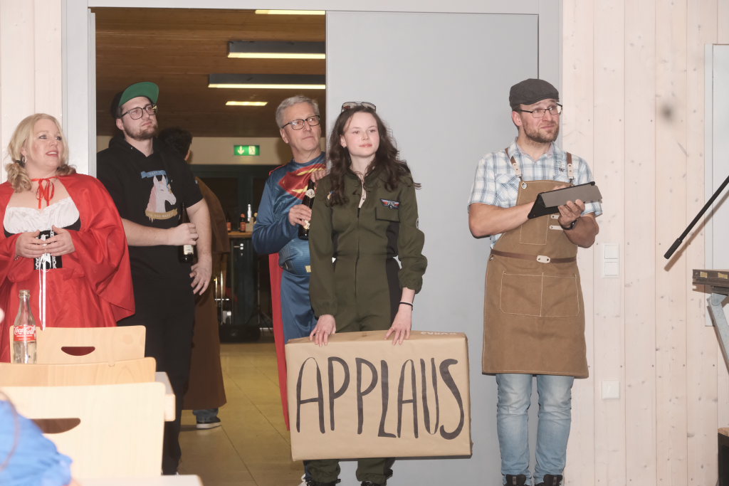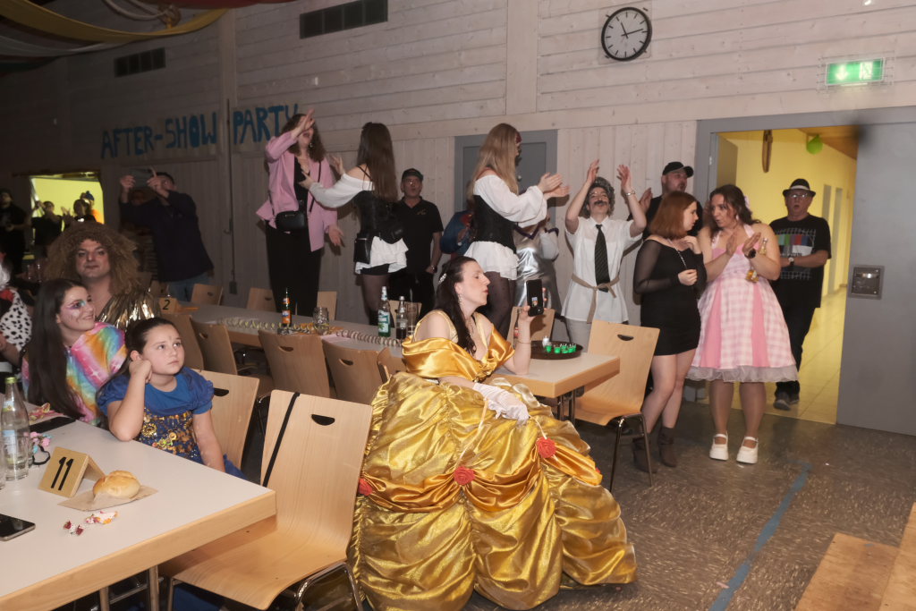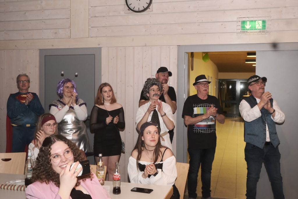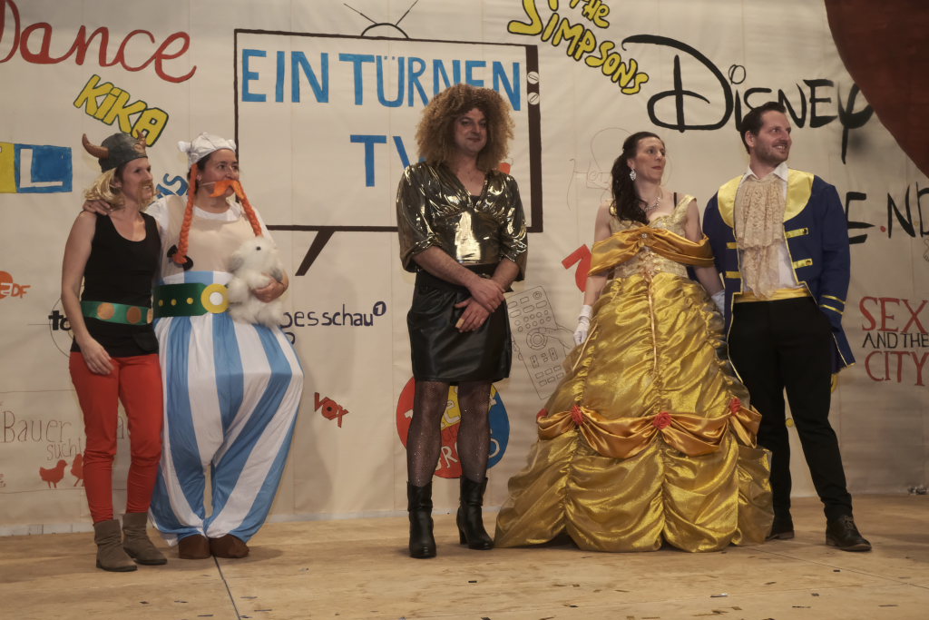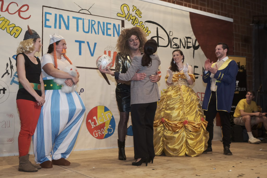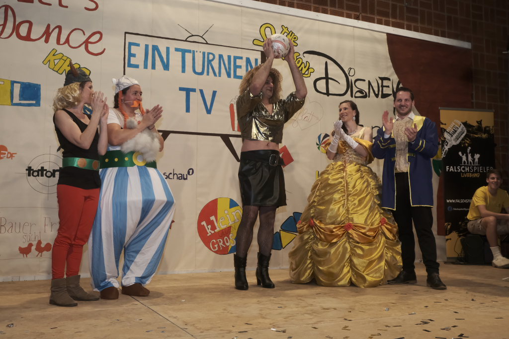 Gemeinsam mit Ines Haag als Co-Moderatorin präsentierte Heinz Schele die Kostümprämierung, für die eine Jury die drei schönsten und originellsten Kostüme vor-ausgewählt hatte. Und so tummelten sich Asterix und Obelix, Tina Turner und Die Schöne und das Biest auf der Bühne. Die Publikumswertung sah dann die muskulöse Tina Turner als Siegerin, die einen von den Musikern signierten Fußball mit nach Hause nehmen durfte.