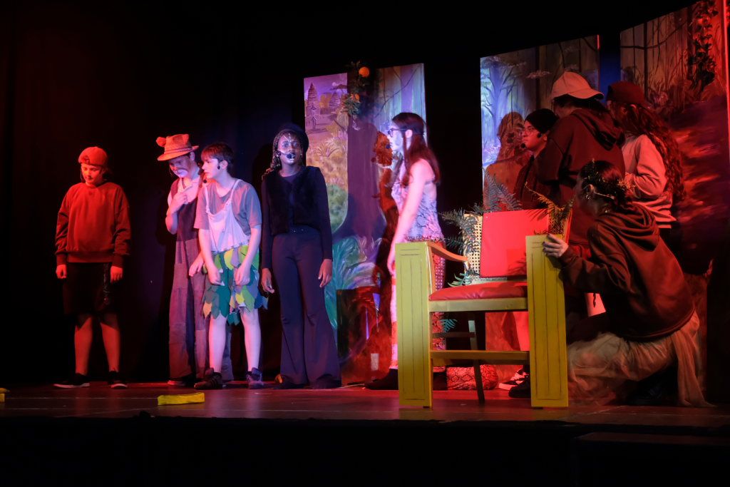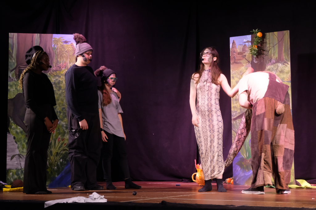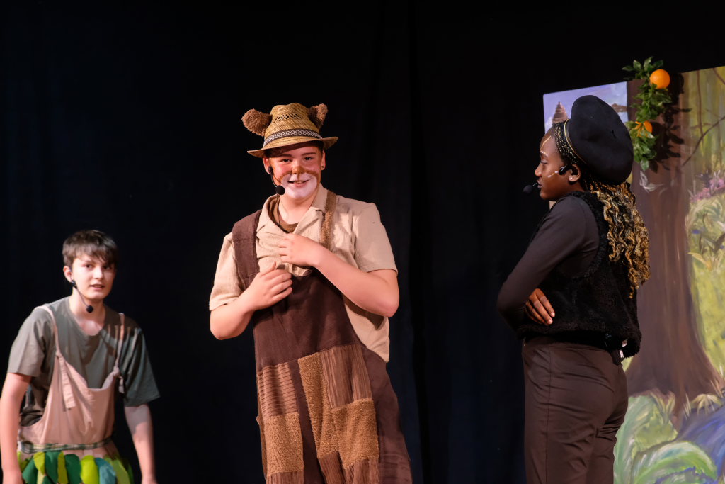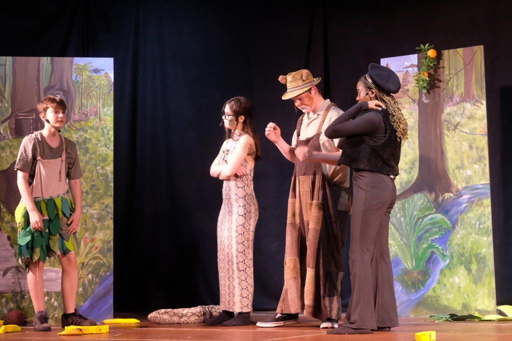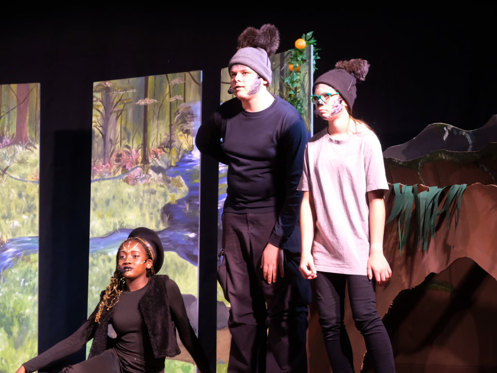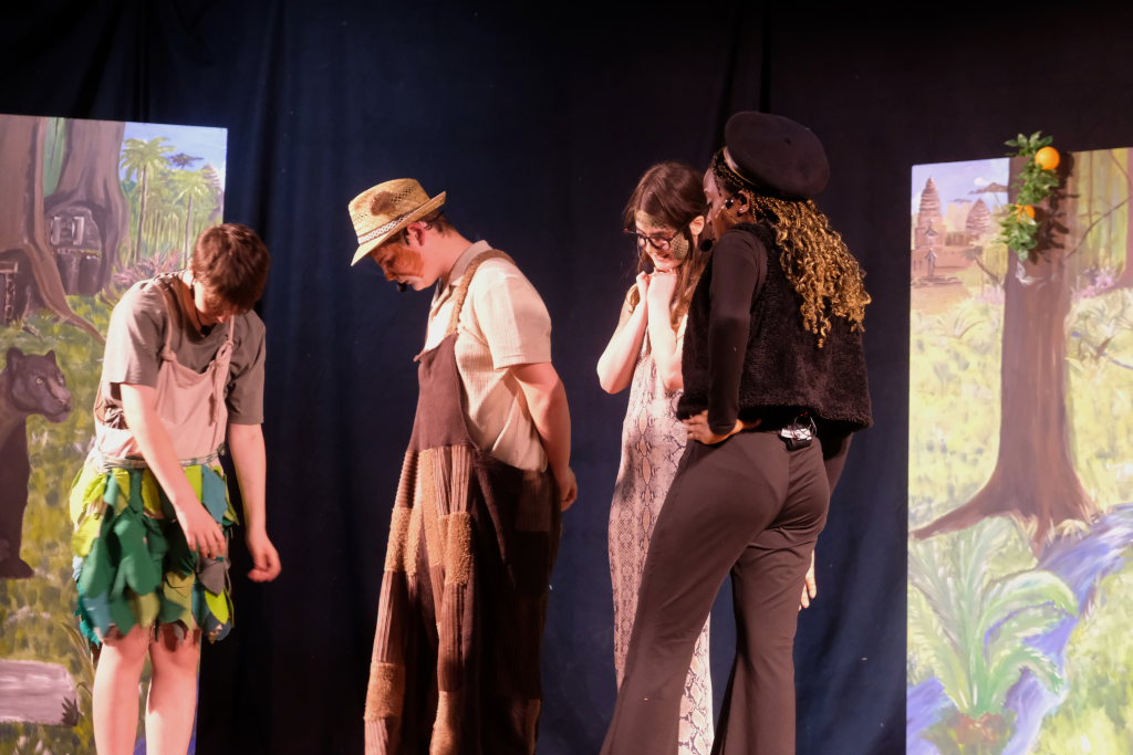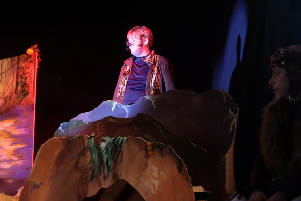 Jedes Kind kennt die Geschichte von Mogli, Balu, Baghira, Kaa und Shir Khan und Co. Aber das, was Luan Blini als quirliger und kluger Mogli, Nic Binder als der gemütliche Bär Balu, Rayana Ouro-Gouni als der faszinierende Panther Bhagira, Maren Distel als die ohne Brille fast blinde Python Kaa und Matthias Swoboda als der im ganzen Dschungel gefürchtete Tiger Shir Khan boten, war schon ein besonderes (Schul-Theater)-Erlebnis. Nicht zu vergessen die Wölfischen Zieheltern von Mogli, Akela (Adam Wesolowski) und Rashka (Lina Madlener), Queen Lui (Melissa Stefanovici) mit ihrem Affenvolk (Luca Friedl, Mike Pol, Alya Uludag, Beline Qaso und Celin Fida). Und die beiden Geier Buglem Dursun und Benjamin Braun, die auf ihrem „Hochsitz“ hockend alles im Blick hatten.