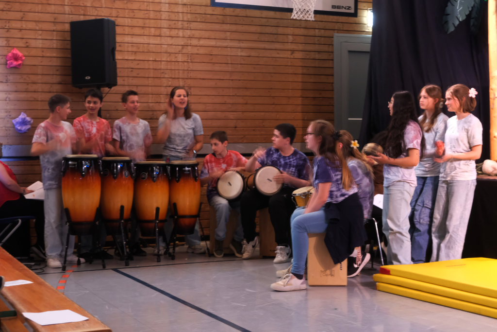 So etwa den Jungle-Drum rund um Leonie Maurer oder den Dschungel-Tanz der Elefanten mit Maren Häberle und ihren großohrigen Dickhäutern. Diese wurden im Rahmen der Projektwoche also sehr kurzfristig einstudiert, was die großartige Leistung nur unterstreicht.