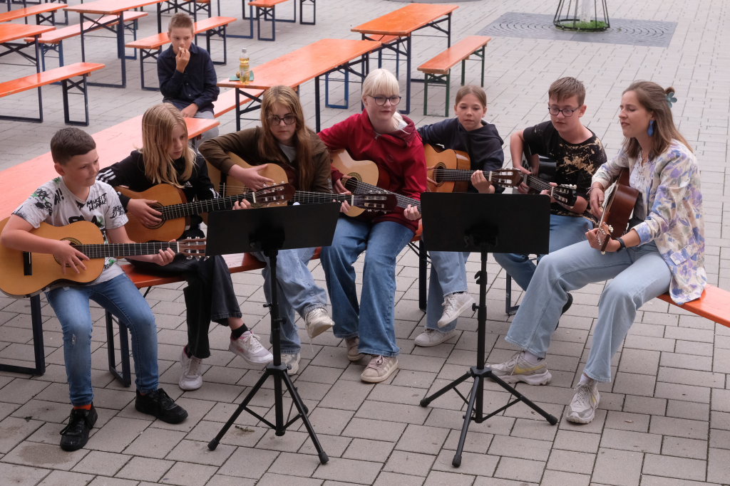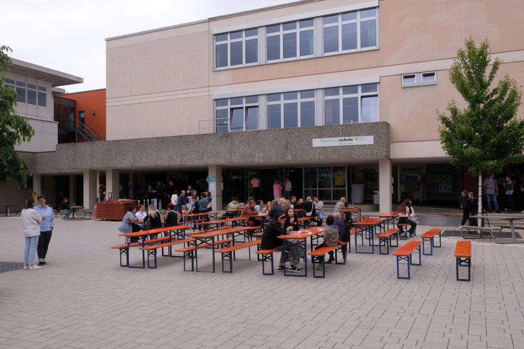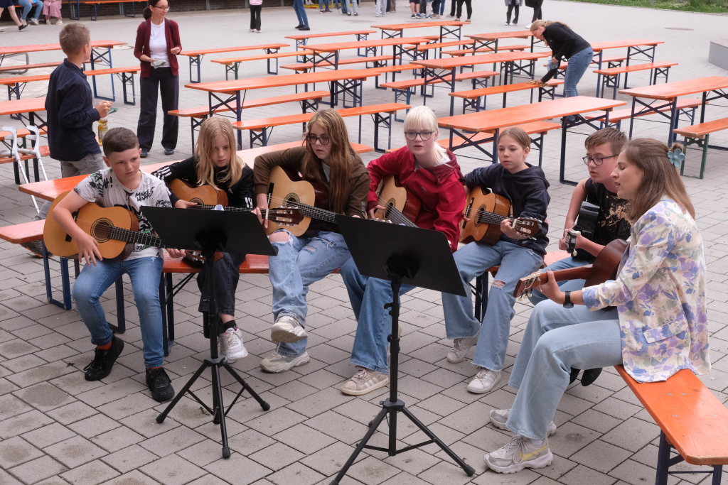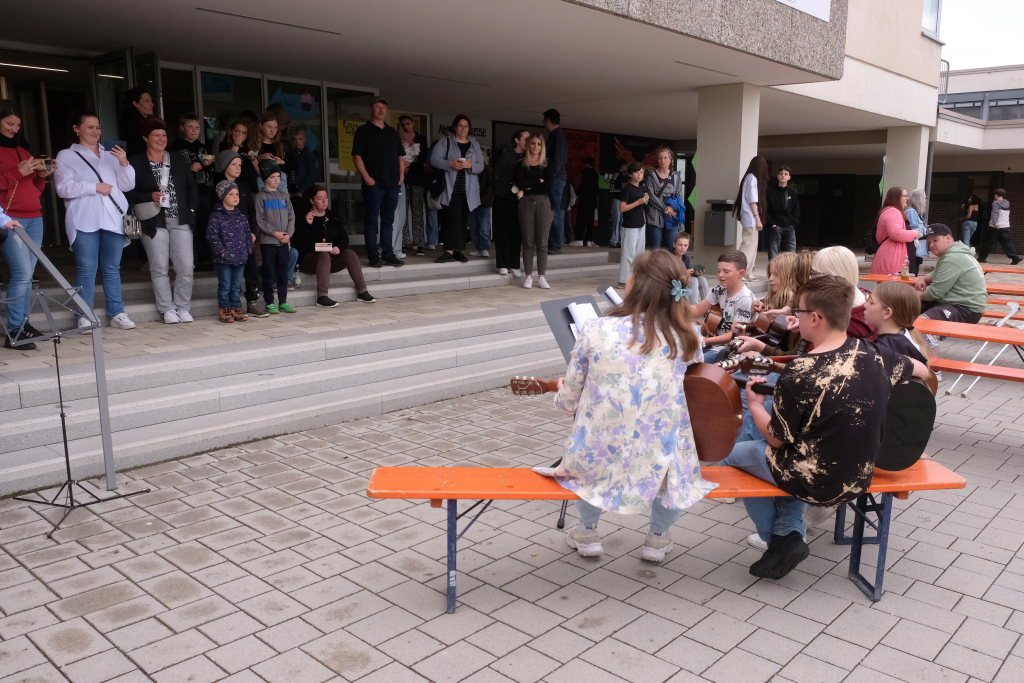Der Förderverein der Schule sorgte für Essen und Trinken und – als das Wetter mitspielte – für trockene Biertischgarnituren im Schulhof. Die Musik-AG spielte mit ihrer Gitarrengruppe einige Songs und erhielten dafür viel Applaus. Auch im Boltzplatzkäfig war immer etwas los.