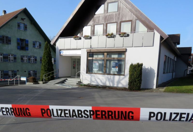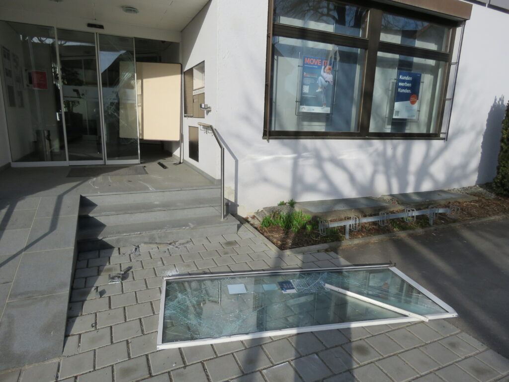 Arnach – In der Nacht von Freitag auf Samstag (6.3./7.3.) um 2.51 Uhr versuchten zwei bislang unbekannte Täter auf dreiste Art und Weise, einen Bankautomaten in der Volksbankfiliale Arnach zu stehlen. Die Täter befestigten einen Spanngurt um den Bankautomaten und hängten diesen an einen VW Golf an. Anschließend gaben sie Gas, zogen den Bankautomaten aus der Bank und schleiften ihn über die Straße in ein nahegelegenes Waldstück. Die zeitnah eintreffenden Streifenwagen konnten Schleifspuren auf der Fahrbahn feststellen und im weiteren Verlauf den Golf mit dem Bankautomaten auffinden. Beim Herannahen des Streifenwagens flüchteten die Täter in den Wald und konnten trotz intensiver Fahndung mit einem Hubschrauber und Suchhunden nicht mehr aufgefunden werden. Den Golf und den ungeöffneten Bankautomaten ließen sie zurück.